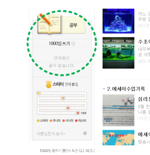 결국, 글쓰기와 책쓰기도 매일 꾸준히 써야 한다는 걸 깨닫고 2년 전, 저는 어마 무시한 프로젝트를 시작했어요. 바로 "천일동안 쓰자! 프로젝트!"