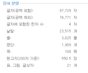 일반적인 단행본 에세이는 최소 45개의 에피소드가 필요하다. 한 에피소드당 HWP 11 포인트 기준으로 A4 두장 정도, 원고지 200자 기준으로는 약 550매 분량이다. (아래는 25.11.11 기준 HWP 1차 퇴고본 문서 분량이다. 현재 퇴고 요청을 기다리고 있기에 요청에 따라 변경될 수 있다. 제발~ 이대로 가기를)