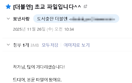 메일을 보자마자 뜨거운 눈물이 울꺽 올라왔다. 한글 퇴고 재요청 메일이 아니었다. 드디어, 드디어 PDF 디자인본이 완성된 것이었다. 2주 동안 퇴고하며 한숨 짓고 머리를 쥐어뜯었던 순간들이 주마등처럼 지나갔다. 빠르게 눈물을 닦고 메일 제목을 다시 주시했다.
