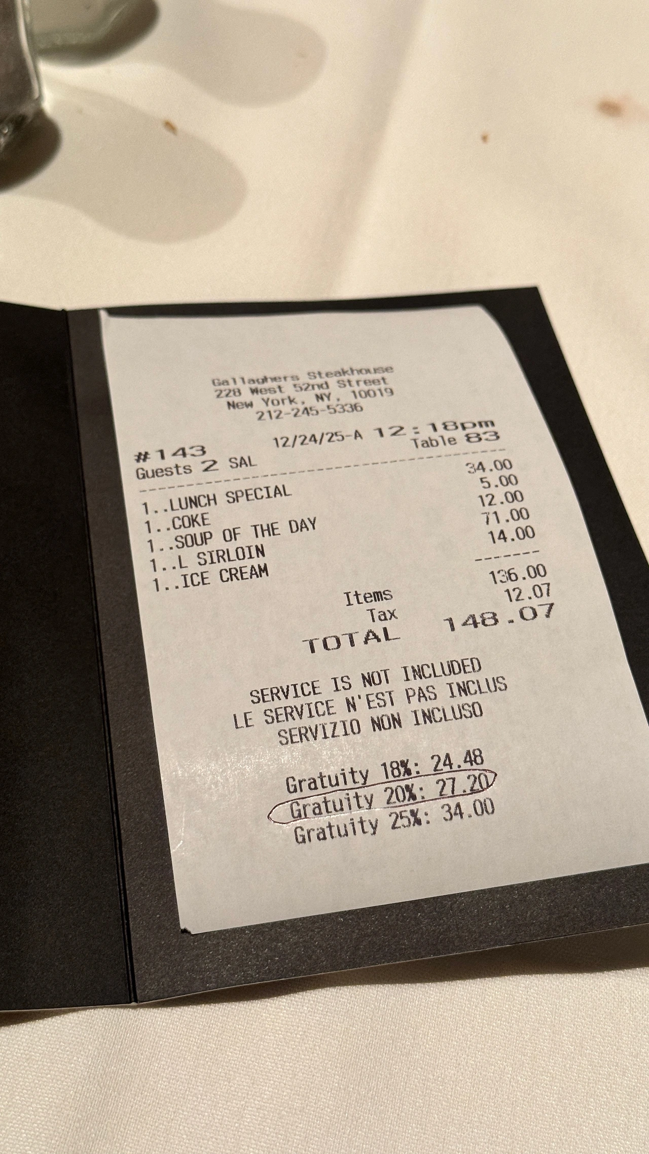 12월 24일 (수) | 갤러거 스테이크하우스, 카네기홀, 딤섬팰리스