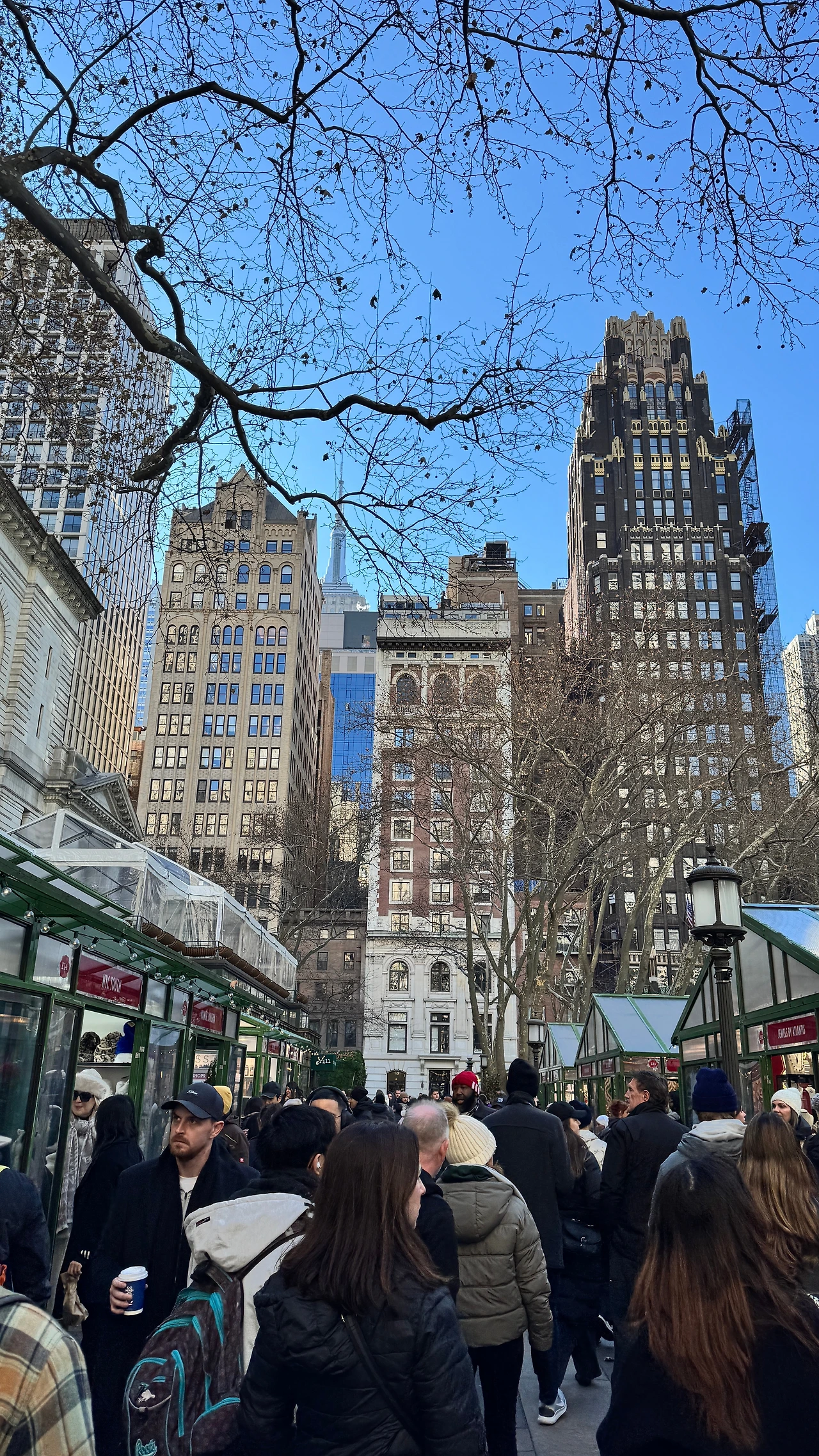 록펠러 센터의 압도적인 화려함을 뒤로하고, 우리는 좀 더 아늑하고 낭만적인 풍경을 찾아 브라이언트 파크의 ‘윈터 빌리지(Winter Village)’로 향합니다.