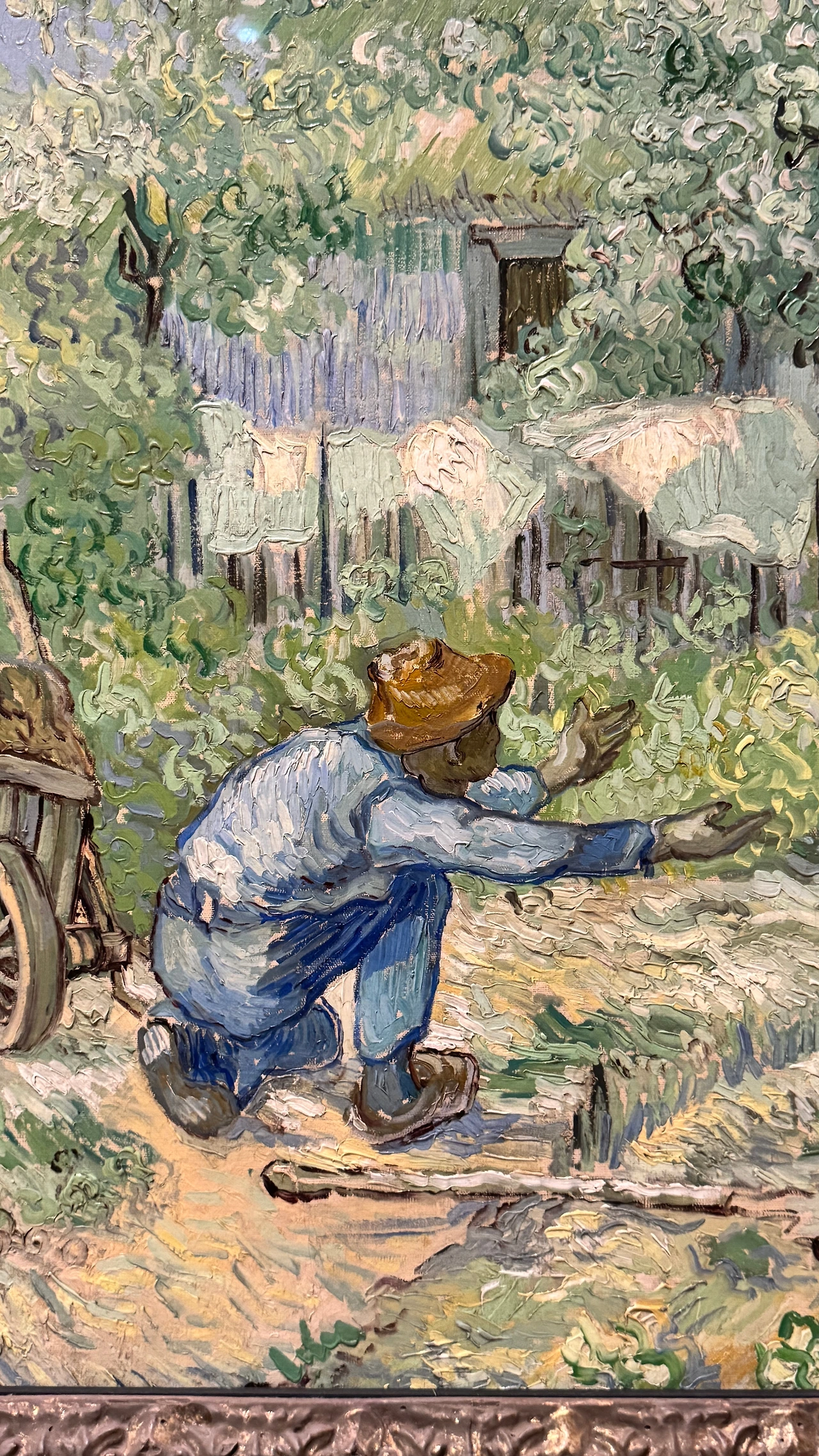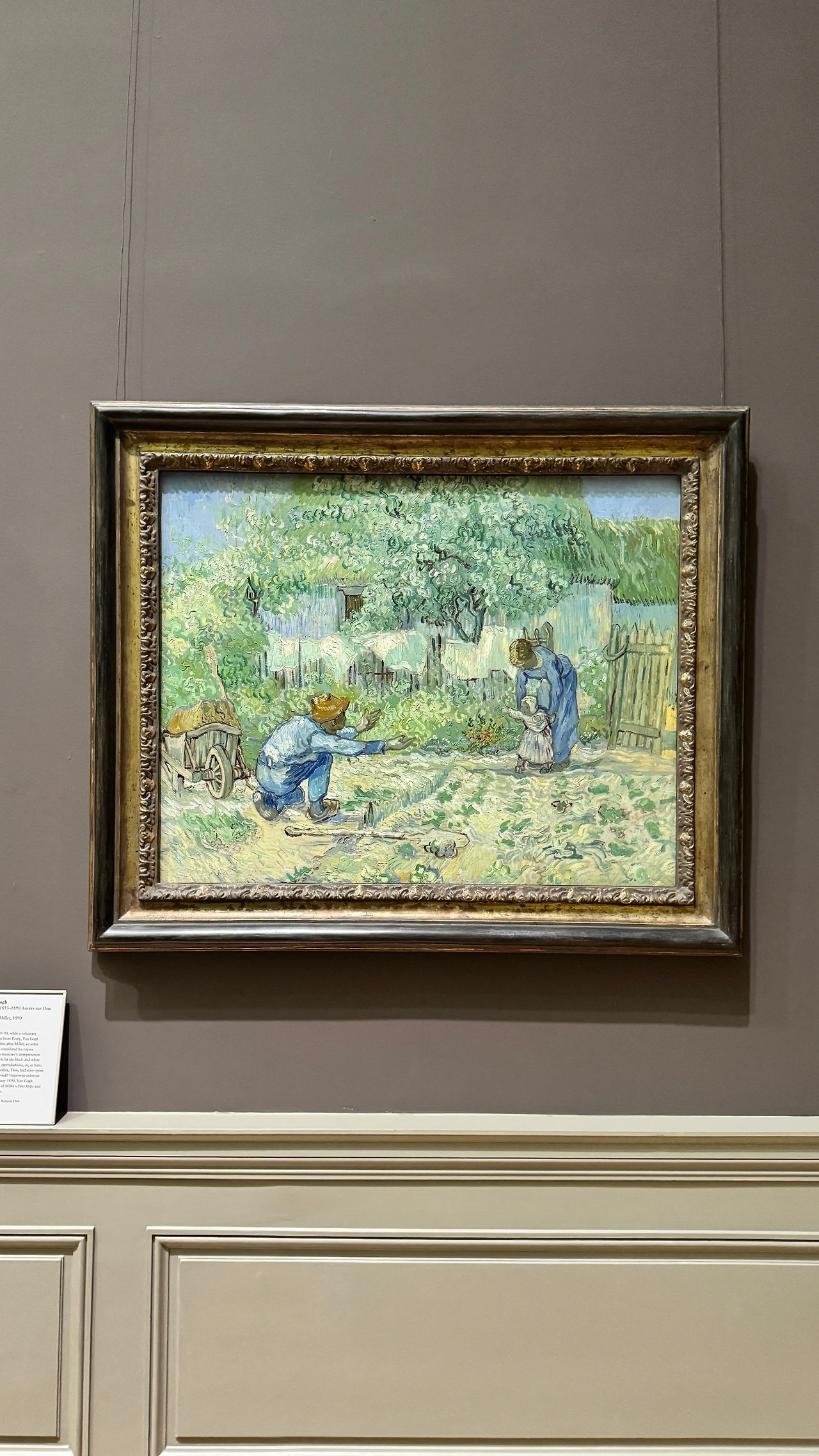 오늘 여정의 가장 깊은 곳에 숨겨두었던, 제 마음이 가장 오래 머문 작품은 825번 갤러리의 빈센트 반 고흐였습니다. 그가 생의 마지막 무렵 생레미의 요양원에서 그린 <첫걸음(First Steps, after Millet)> 앞에 서자, 그동안의 긴장이 무장해제 되며 뜨거운 경탄이 차올랐습니다.