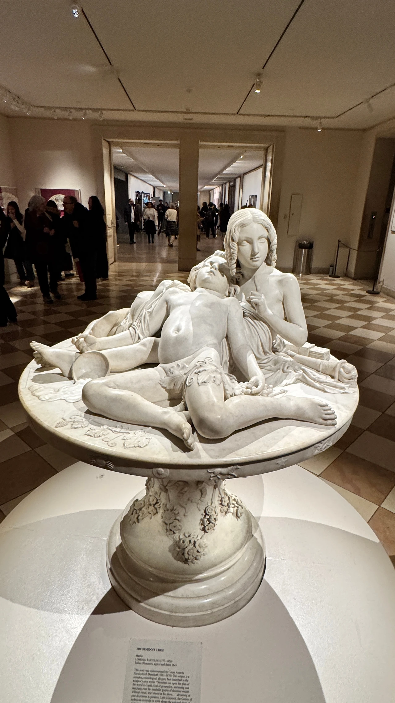 유럽 조각관으로 발길을 옮겨 복도 한가운데 놓인 <데미도프 테이블> 앞에 섭니다. 1845년, 로렌조 바르톨리니가 빚어낸 이 거대한 대리석의 세계는 오늘 같은 비 오는 날 더욱 묵직한 존재감을 드러냅니다.