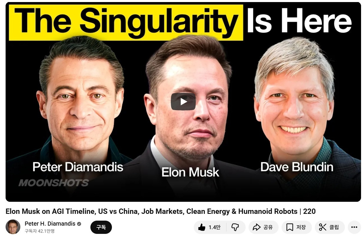 JFK 공항 라운지는 생경할 만큼 고요했습니다. 지난 15박 16일, 뉴욕의 소음 속에서 내내 곁을 지키던 시은이를 다시 캐나다 학교로 보내고 홀로 인천행 비행기를 기다리는 시간. 시끌벅적했던 여행의 여운이 채 가시기도 전에 찾아온 것은, 쉰을 내일모레 앞둔 아빠가 마주한 적막한 공백이었습니다. 그 공백을 견디려 무심코 연 스마트폰 화면에서 일론 머스크의 목소리가 흘러나왔습니다. 텍사스 기가팩토리에서 진행된 어느 대담 영상이었습니다.