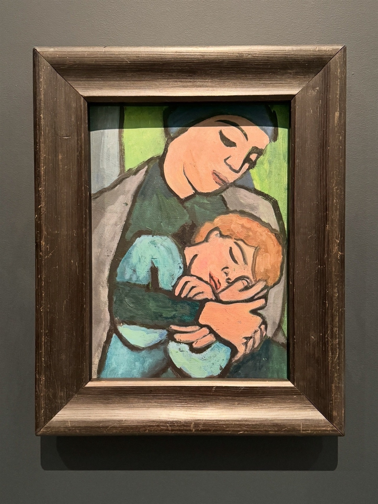 그렇게 존재의 실존을 확인하며 도달한 구겐하임의 중심부에서, 저는 마침내 가브리엘레 뮌터의 '잠자는 아이와 엄마'를 만났습니다. 사실 그날 아침, 우리 숙소의 공기는 무겁게 가라앉아 있었습니다.