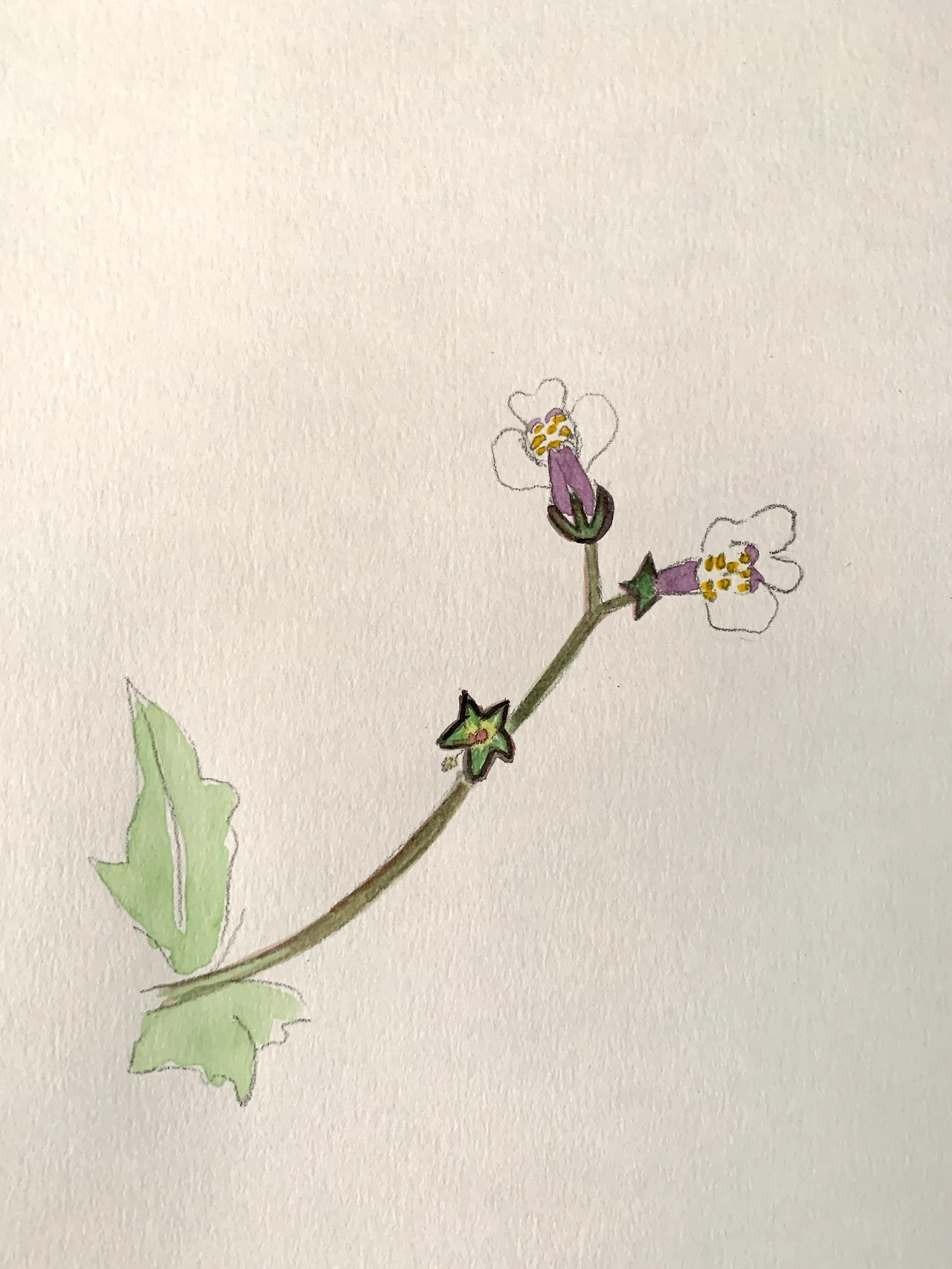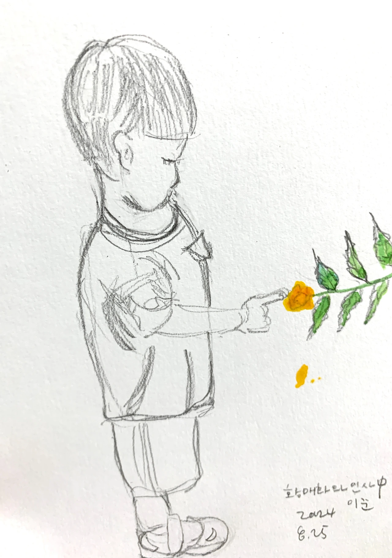 부지런한 아빠가 풀을 맸다고 생각했는데 엄마였다. 주름잎 그리기를 미룬 게 후회되었다. 아쉬운 마음에 검색을 해서 그려본다. 역시, 대상을 직접 보고 그릴 때와 다르다. 잎에 주름이 있어서 주름잎이라는 이름이 붙었다 한다. 처음엔 이 작고 귀여운 꽃에 주름잎이라니 어울리지 않는 이름이라고 생각했다.