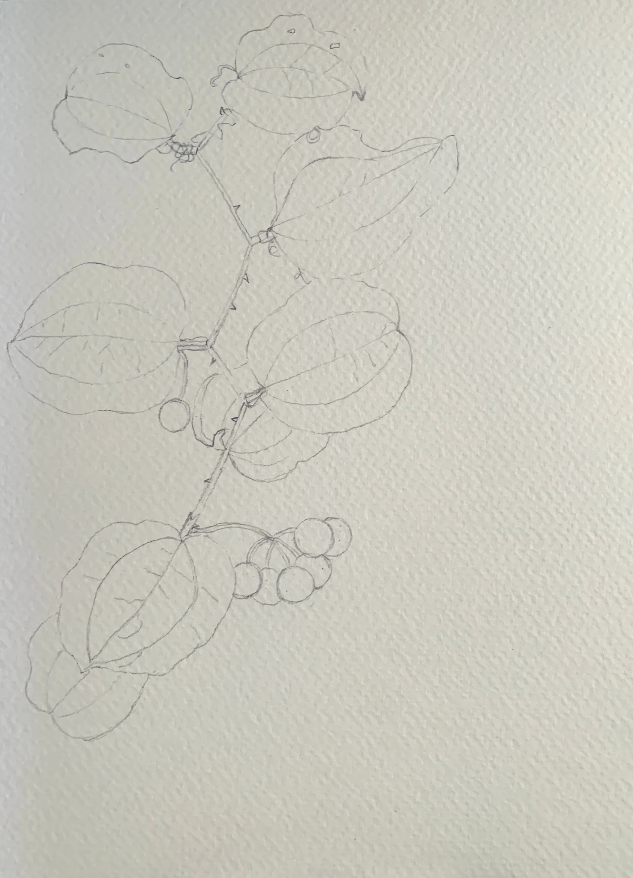 선생님의 '열매 찾기 나섬'이 없었다면 청미래덩굴의 반전 매력인 가시 없이 그릴 뻔했다. 질문도 생겼다. 내가 본 청미래는 왜 열매가 없었지. 엄마가 식물에도 암, 수가 있다고 말했던 게 생각났다. 흘려 들었는데 이 순간 딱 맞아떨어지는 느낌. 진짜였다.