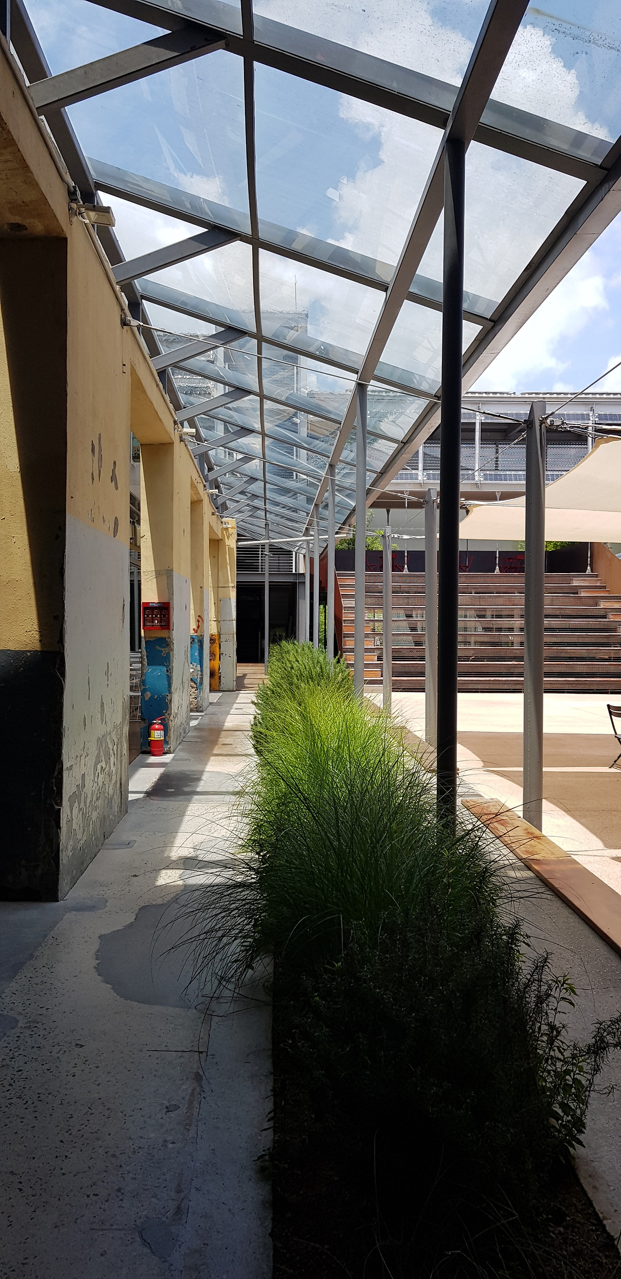 오래된 것과 시공간을 새로운 시간으로 재해석해 창조해낸 새로움이 함께 어우러지는 공간들이 인상적이었다. 과거와 현재가 서로의 시간과 공간을 조금씩 내어주고 차지하며 공존해 있는데 그것이 또 다른 새로움으로 느껴지는 곳이었다. 이날 중정에서 올려다본 하늘은 뜨거운 햇살이 작열하는 지붕 위로 하얗게 피어오르는 구름과 어우러져 한 폭의 액자가 되었다. 이곳에서 다양한 공연과 행사들이 열리면 운치 있는 야외공연장이었을 것 같은 중정에는 아랑곳 않는 폭염이 가득 쏟아지고 있었다.