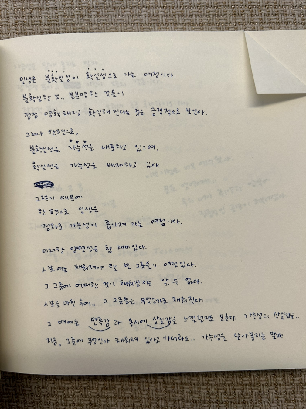 人生은 불확실성이 확실성으로 가는 여정이다.