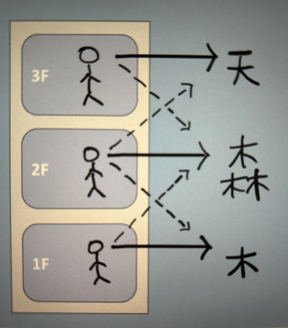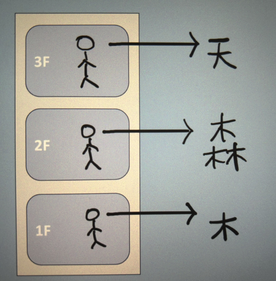 조직은 마치 각 층에 사람들이 있는 것과 같으며,