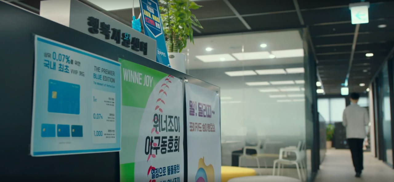 극 중 김지원 배우가 분한 염미정이란 캐릭터는 회사 내 '행복지원센터'라는 곳에 매번 불려 간다. 센터에는 사내 동호회 활동을 적극 권장하는 상담사분이 계시고, 염미정은 매번 적극 권유를 당한다. 동호회 활동은 곧 행복이라는 것처럼.
