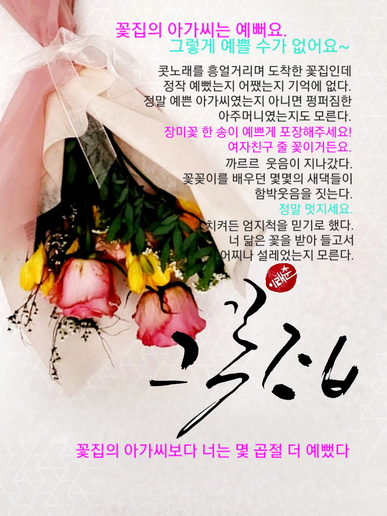 환하게 웃으며 꽃집 아가씨가 말을 받았다.