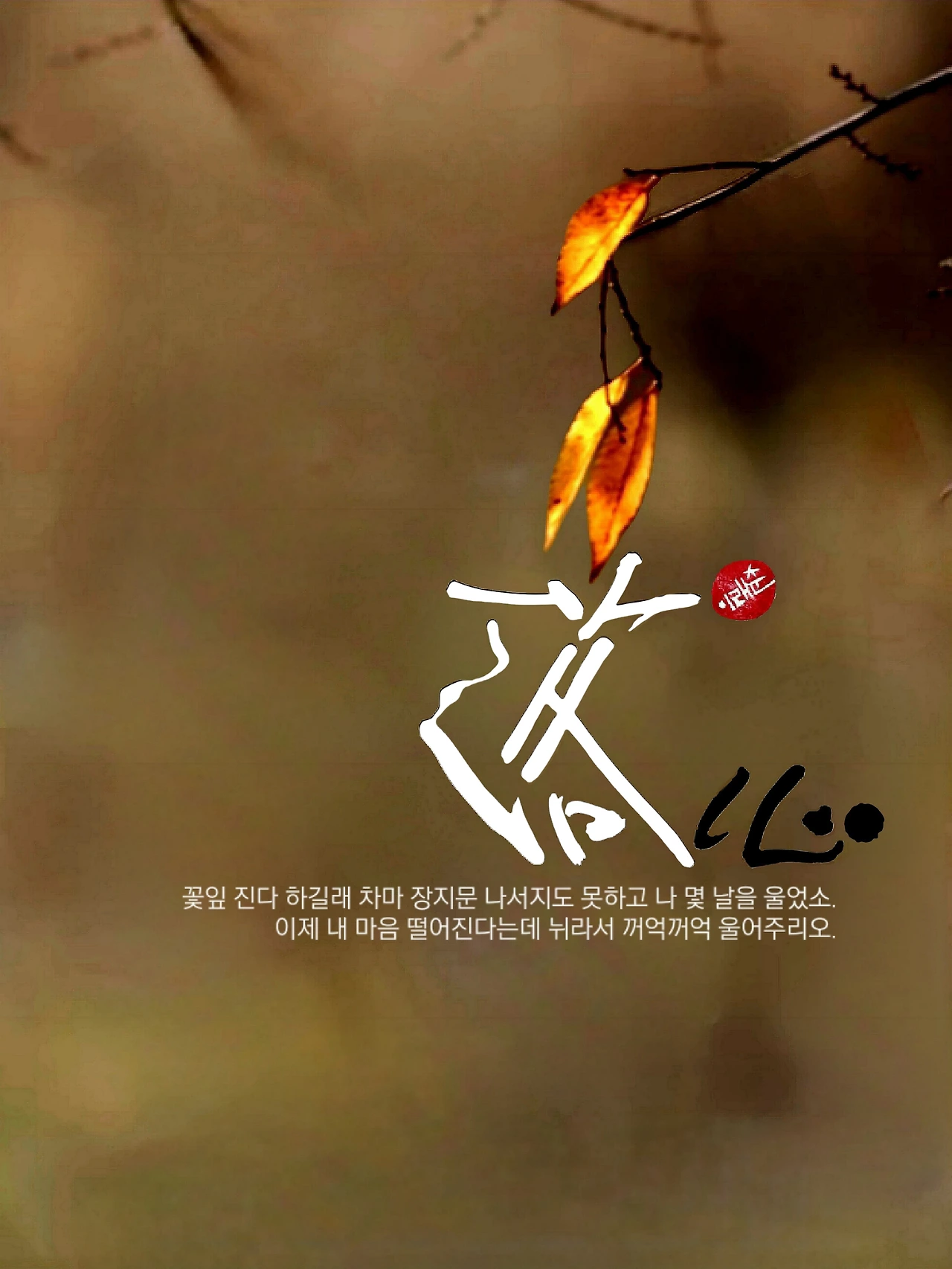 꽃잎 진다 하길래 차마 장지문 나서지도 못하고 나 몇 날을 울었소. 이제 내 마음 떨어진다는데 뉘라서 꺼억꺼억 울어주리오. 그런 생각이 들더이다. 그럴 날 없음을 모르지도 않는데 행여라도 말이오. 시간을 거슬러 오를 수만 있다면 어미에게 부탁을 하고 싶으오. 싸릿가지 하나 회초리 삼아 종아리를 때려달라 매달리려오.