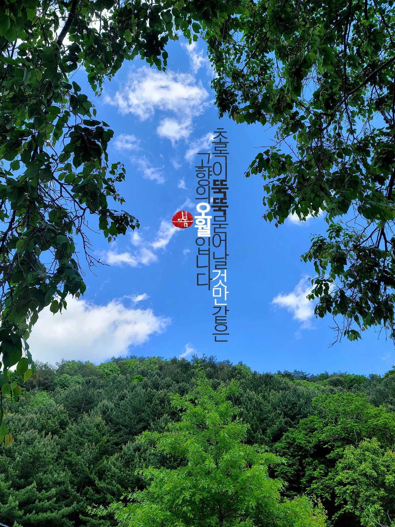 살랑살랑 바람이 불었습니다. 주말 밤을 꼬박 적시던 비가 그치고 어제는 푸른 하늘이 빼꼼히 인사를 했습니다. 흰구름 그림처럼 동무 삼고 소풍이라도 즐겼을지 모르겠네요. 너울대는 초록과 찰떡궁합이 따로 없었습니다. 맑고 투명한 바람이 나뭇가지를 흔들며 지나가면 덩달아 흰구름도 강아지처럼 겅중거리더군요. 바라봄이 좋아서 고향집 마당을 떠나지 못했습니다.