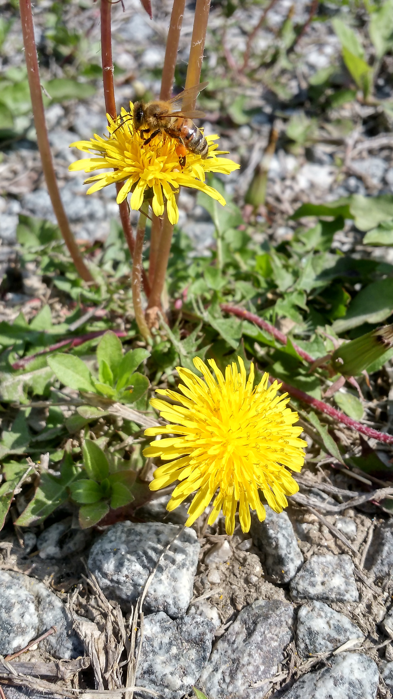 소리도 없이 꽃대를 기어오르는 노린재와 붕붕 요란한 꿀벌의 비행은 사뭇 달랐지만