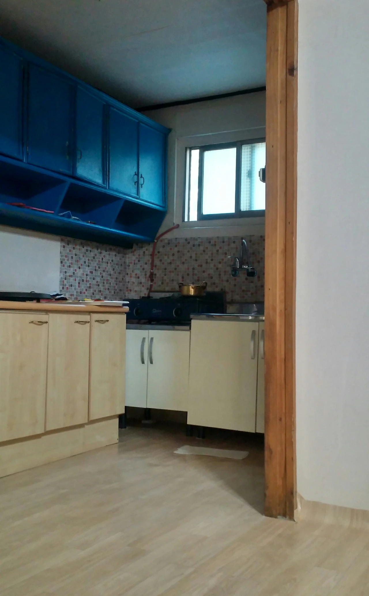 걸레를 빨아 바닥을 닦고 싱크대에 커피잔 둘, 젓가락 세 벌 그리고 작은 접시 셋...