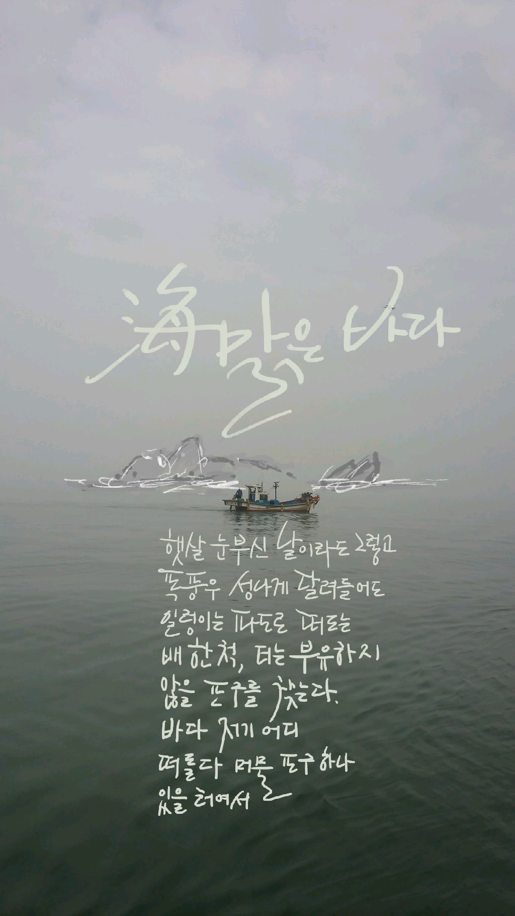 어쭙잖은 시를 끄적이면서 합장하는 마음으로 소원했다. 너 있기에 머물러 평온한 포구 하나 저 섬 어느 해안에서 기다려주었으면 했다. 간절함은 말이 되고 몸짓이 되어 백지 위를 달렸다. 남자가 함께 뜀뛰고 있었다.