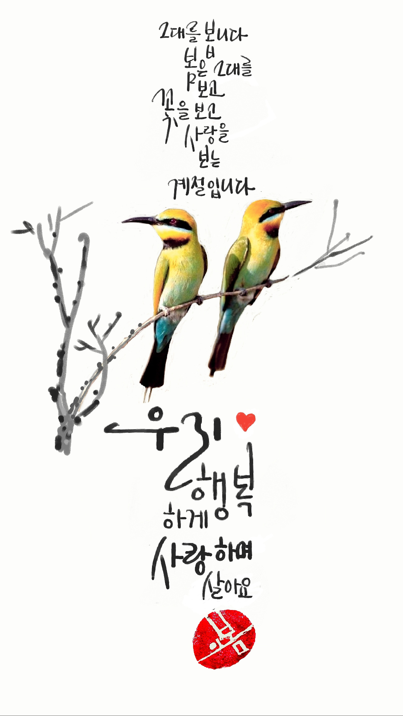 그냥 네가 좋아. 굳이 이유를 찾자면 마음을 빼앗겼으니 빼앗긴 만큼 네가 좋아. 혹여라도 왜 빼앗겼는데?, 하고 묻지는 마. 왜냐하면 나도 모르겠거든. 봄이 오고 꽃이 피듯 나는 너를 보고, 심장 떨리게 행복해 말을 할 뿐이야.