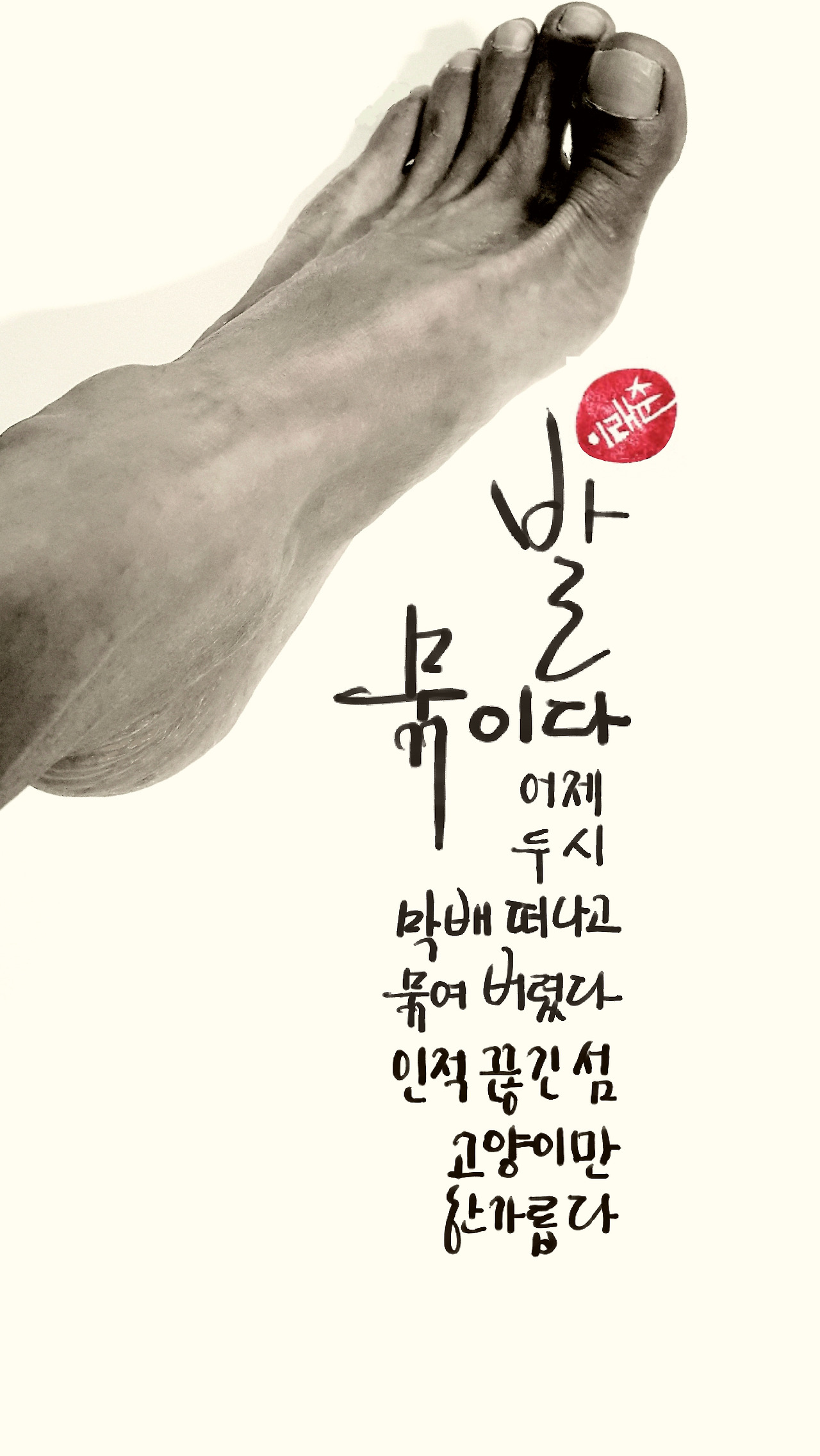 섬엔 종일 비가 내렸다. 내리다 말다를 반복하는 사이, 사이엔 고양이 몇 마리 시무룩 고개를 떨구고 얼굴을 내밀었다. 젖은 털은 어쩐지 숲을 헤쳐 먹을 것 구걸하는 처량함이 속속들이 스며들었다. 한 없이 먼 시선으로 나를 본다. 쳐진 꼬리로는 연신 젖은 마당을 쓸었다. 느리고도 기운 없는 걸음이 비에 젖었다. 서로를 바라보았다. 고양이의 눈은 오이씨 길쭉하게 나를 보았고, 나는 다만 처량하게 작은 눈을 마주쳤다. 나눌 게 없었다. 참치깡통 몇 개 선반에 있었지만 그게 전부였다. 너 주자고 내가 굶을 수는 없었다. 고작해야 주먹만한 몸뚱이에 그보다 작은 창자 구불거릴 터인데도 채워줄 무엇이 없었다. 쓸데도 없는 마당질이 미안했다. 마당은 이미 앞 서 다녀간 빗물이 한바탕 설겆이로 씻어낸 뒤였다.