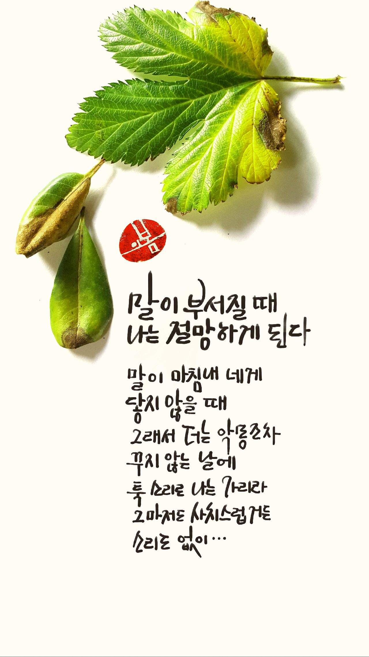 툭 하고 떨궈낼 단풍 한 잎 만들 수 있다면