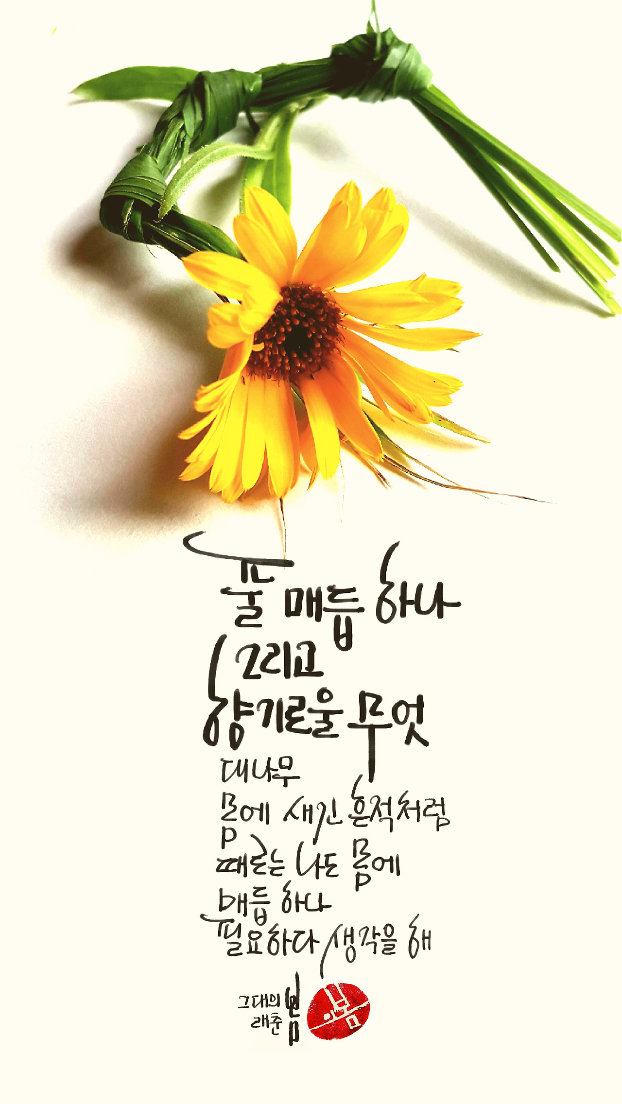 풀리지 않을 매듭 하나 묶어야할 시간이다. 그렇다고 너무 매몰차서 다시는 추억조차 버거운 매듭이라면 그것도 원하는 바가 아니다. 성장의 자리마다 단단한 마디 하나씩 세워 오히려 하늘가에 출렁이는 대나무처럼 스스로의 지지대나 계단 같은 매듭이었으면 좋겠다. 철옹성처럼 단단한 마디 세웠었도 그 마디마다 양분이 흐르고 물이 넘나들어 성장하는 대나무 매듭이라면 얼마나 좋을까? 더 나은 미래를 위한 성장통이라면 얼마든지 웃으며 앓을 수 있다. 아프지 않은 인생이 어디에 있을까? 아프니까 청춘이란 말도 있지만 꼭 아파야만 청춘이라고 하기엔 좀 그렇고, 삶의 숱한 몸짓과 맞닥뜨리게 되는 일들이 어디 다 좋을 수만 있을까? 아픈 마디 하나쯤 따라올 수밖에 없다. 청춘의 열정으로 까짓 아픈 마디 서넛쯤이야 감기처럼 털어내면 그만이다. 그래서 청춘이다, 라고 말하면 좋지 않으려나 모르겠다. 오늘 청춘의 매듭을 얘기하기엔 워낙 멀리 흘러가버린 세월이고, 고뿔에도 삼칠 일 누워 골골거릴 세월이라서 몸살로 앓게 되는 매듭은 더는 묶고 싶지 않았다. 묶인 매듭에 갇혀 어후적거릴 게 뻔한데 굳이 자초해서 가뜩이나 질박한 인생에 매듭 하나를 더하고 싶었을까 말이다. 산다는 건 원치 않는 일들이 더 친한 척 아양을 떠는 거라서 결국은 마른 몸뚱이에 매듭 하나를 지어야 한다. 결박처럼 단단하게 지을 일이다. 더는 헐거워 반복되지 않기를 소원할 뿐이다.