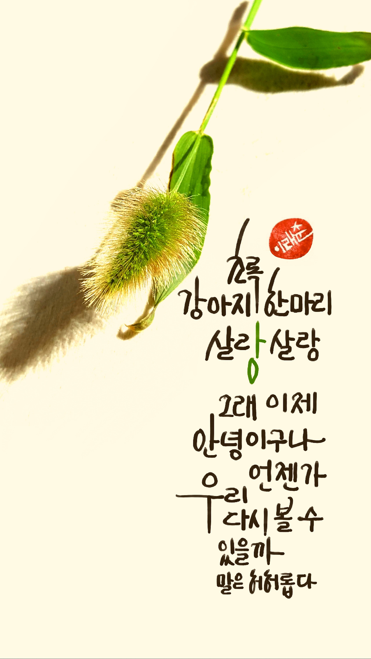 말 섞을 일 없으니 풀강아지 한마리 귀여워라