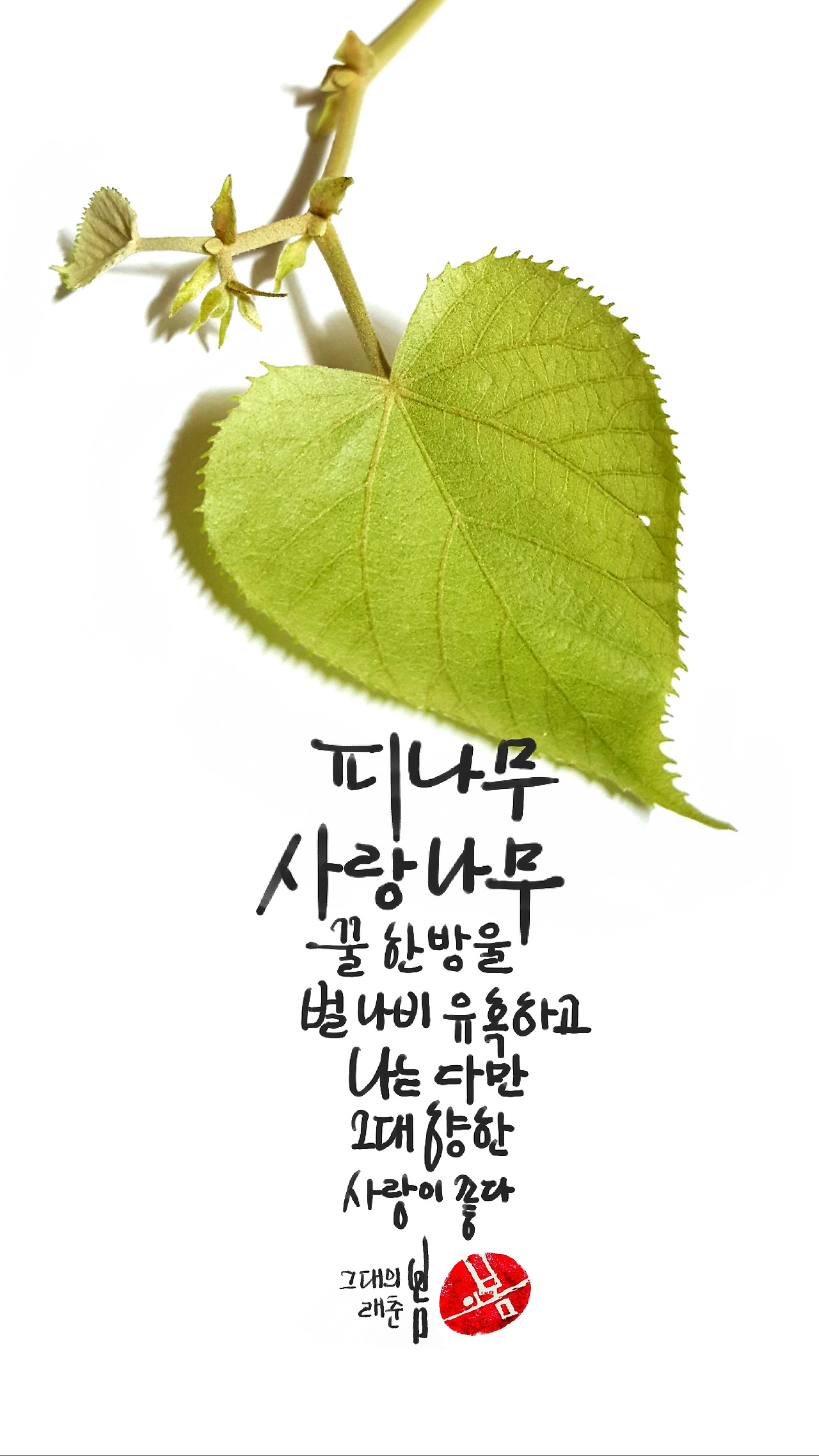 폭염이 기승을 부릴 때 뒤란의 텃밭을 살비다가 피나무 여린 이파리 하나를 만났다. 초록이 짙어 그림자마저 어둡게 수묵으로 변한 여름인데 피나무 곁가지 하나 연두색 곱게 햇살에 흔들리고 있었다. 단지, 연두색 여린 잎이라 시선을 끈 건 아니다. 손가락 하트 만들어 아양을 떨던 나라서 이파리 하나 그대를 향한 심장으로 곱게 자라서 어찌나 반가운지 몰랐다. 마음을 준다는 것, 마음을 쓴다는 것은 그만큼 궁금하다는 얘기이기도 하다. 피나무 예쁜 잎이 눈에 들어왔으니 피나무가 궁금한 것은 당연한 일이다. 초록색 검색창에 물었다. 피나무는? 간단한 질문에 앎을 자랑하고픈 말들이 주절주절 뜬다. 나무의 키는 20여 미터까지 자라고 꽃은 6, 7월에 걸쳐 피는데 꽃의 향기가 특별하고 꿀은 약효가 뛰어나다, 라는 설명이 나온다. 이어 수피는 섬유질이 풍부해서 끈이나 밧줄로 만들어 피나무란 이름의 유래가 되기도 했다 하고, 목질은 가볍고 단단해서 가구의 목재로 쓰이기도 했다고 했다. 게다가 덧붙이기를 서양에선 달콤한 꿀의 유혹을 빗대 'bee tree'로 불리운다고도 했다.