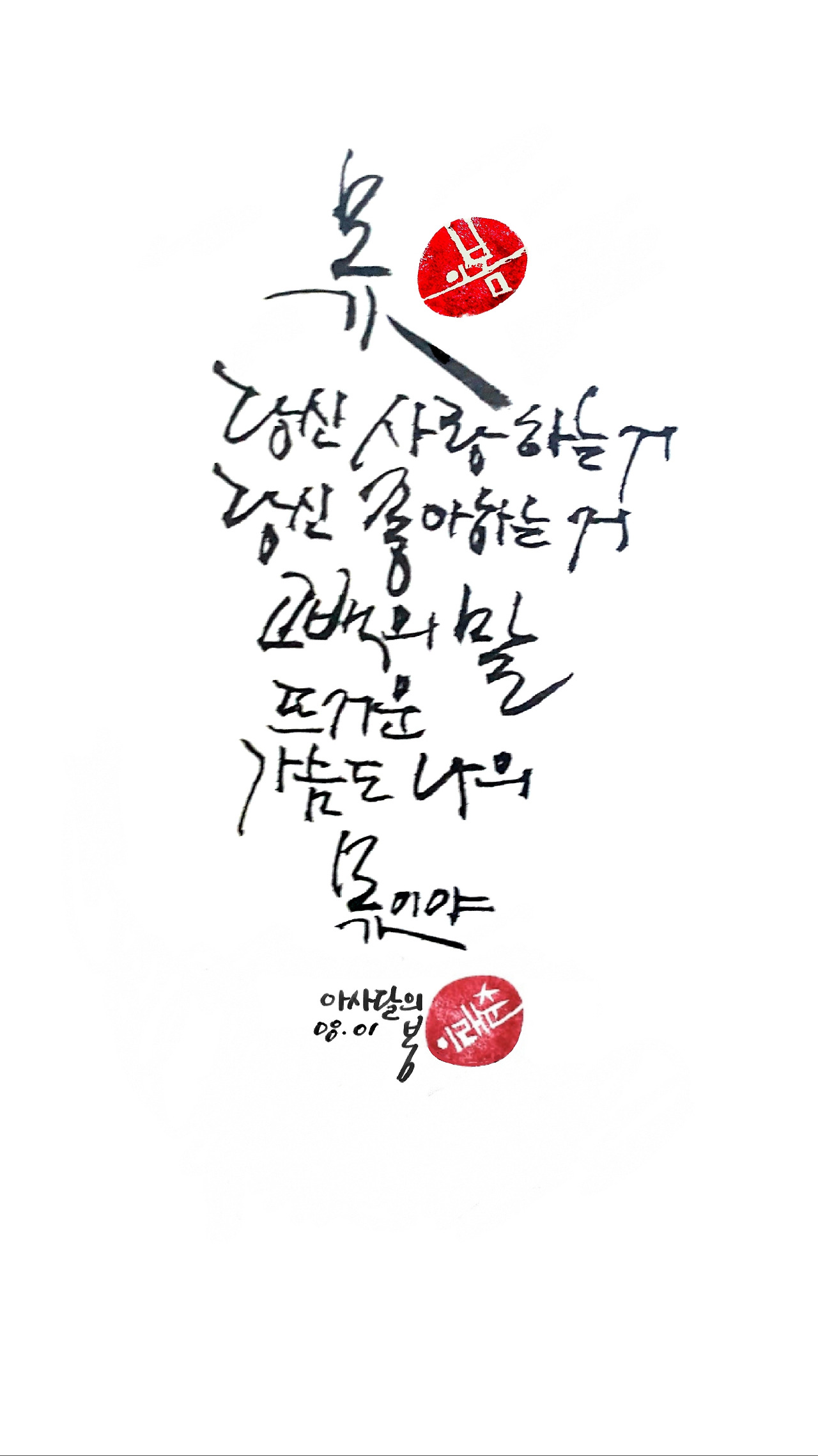 생각이 거기에 닿았을 때 남자는 붓을 들어 문장 하나를 완성했습니다. 빨간 인주 잔뜩 묻혀서 도장도 하나 찍었습니다. 그대의 봄, 래춘! 남자에게 주어진 몫은 하나입니다. 그보다 조금 더 사랑하는 거, 그게 남자의 행복입니다.