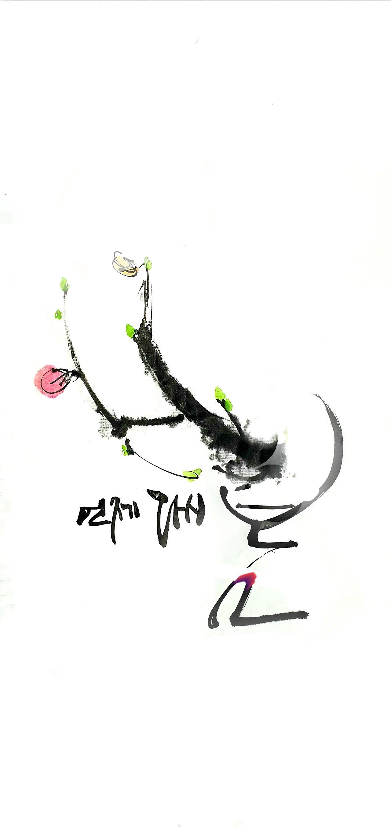 "당신이 있어 난 행복한 놈이야!" 떠들 당신이 게 있고, 주절주절 수다가 행복한 시간이 있으니 나는 다만 만족할 수 있어. 연두색 물감에다 다홍색 물감 조금 짜내고서 마른 붓에 촉촉이 물을 적시고서 오늘도 화선지 손바닥 가득 문질러 곱게 폅니다. 행복이 알알이 여무는 시간입니다.