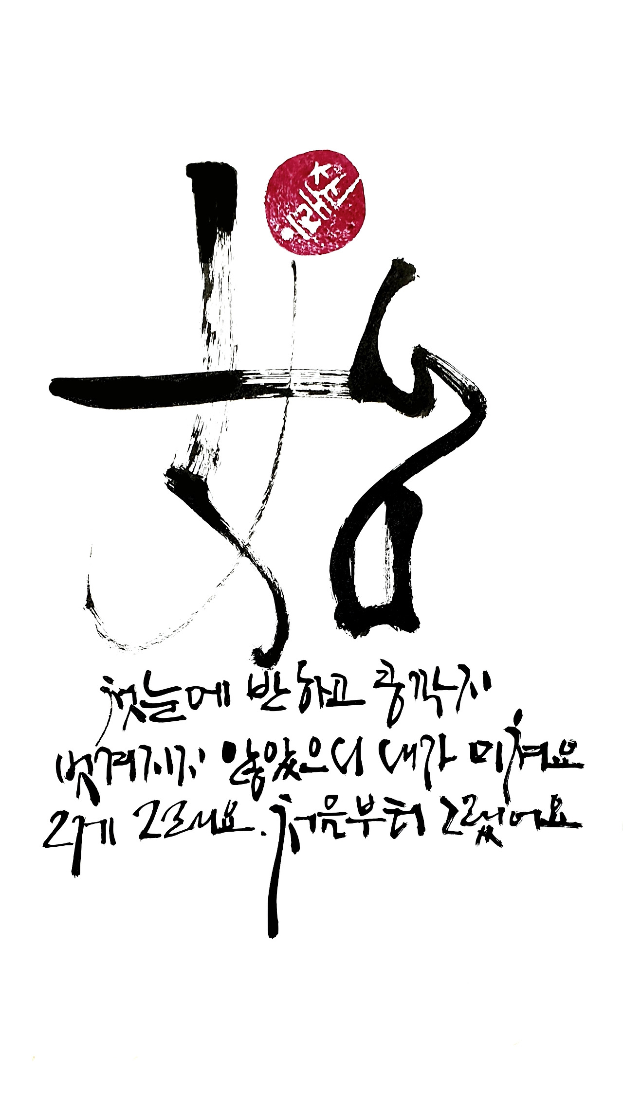 그래, 그런 거야... 붓을 들고서 먹을 찍었을 때 고민이 되더군요. 망설였습니다. 뭘 쓸까 고민하게 됩니다. 그러다 처음이란 말을 썼습니다. 눈에 들었으니 아른거리게 되고, 가슴에 담았으니 저릿한 마음입니다. 사실 너무 아프고 쓰립니다. 핸드폰을 들면 하루에도 수십 번 전화를 걸고 싶어 집니다. 화면 가득 키패드 띄워 놓고서 차마 누르지 못할 뿐입니다.