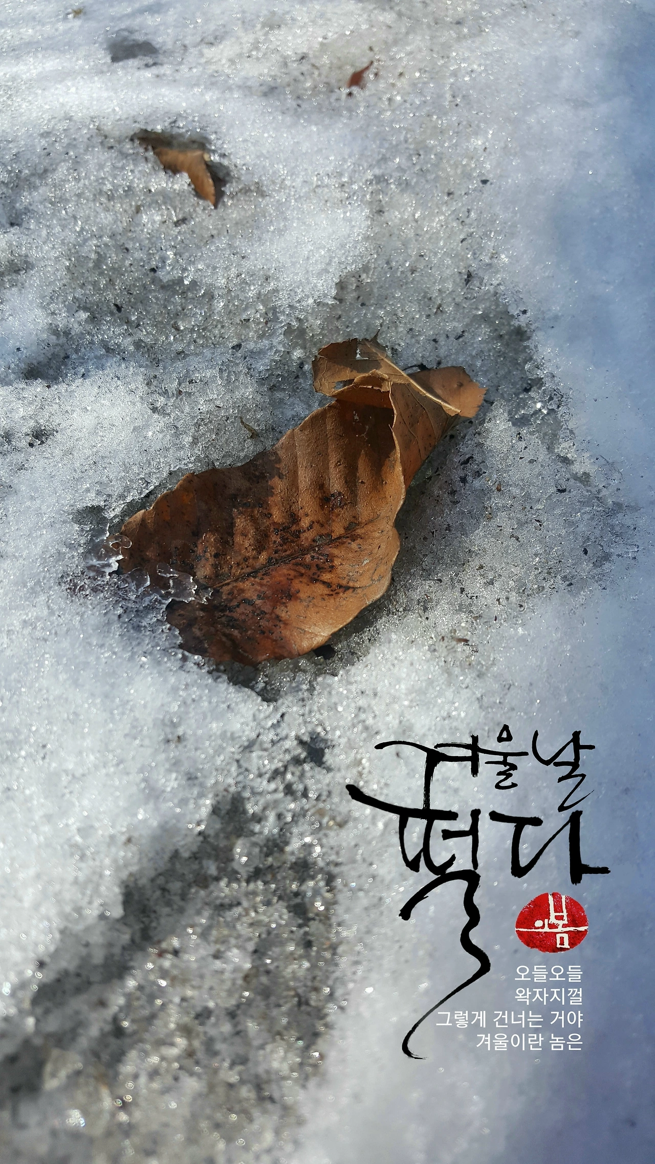 오들오들 바들바들 떨어서 좋았던 건 오직 하나의 이유 밖에는 없었던 거 같아. 이제나 저제나 하며 기다리시던 어머니의 기다림과 이불을 끌어당겨 언 몸을 녹여주시던 마음이 봄날이었어. 요 며칠 갑작스럽게 날씨가 곤두박질치고 아픈 발이 꽁꽁 어는 것만 같아서 그런가 옛날이 생각나더라고.