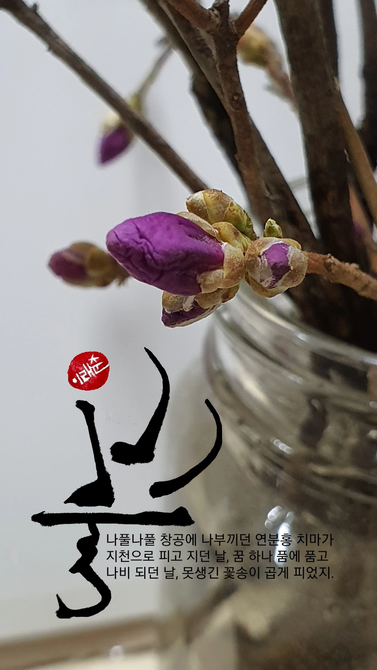 유리병에 물을 담고 손에 쥔 꽃가지들 이래라저래라 잔소리로 담가놓고서, 하룻밤에도 몇 번이고 일어나 바라보았다. 이제나 저제나 하며 서성이던 시간은 툭하고 벙글어질 봄날이었다. 조바심에 등 떠밀려 자다 깨다 맞는 시간은 얼마나 황홀했던지 모른다. 풀방구리에 생쥐 들락거리듯 문지방이 닳았을 터였다.