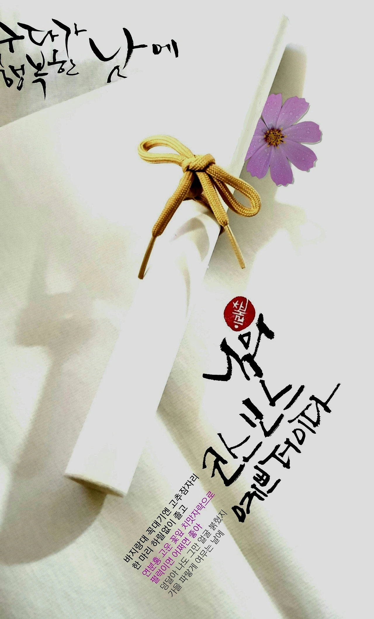 찬바람이 불기 시작하면 집안의 문이란 문은 다 떼어내서 문풍지를 새로 발랐거든. 말하자면 김장을 담그고, 장작을 산더미처럼 준비하는 것처럼 문풍지를 바르는 것도 월동준비의 하나였어. 문살에 풀을 바르고 곱고 하얀 종이를 붙이고는 미리 눌러두었던 꽃잎으로 문을 예쁘게 꾸몄지. 들일이며 집안일로 거칠어진 엄마의 손에서 마른 꽃들이 피었어. 코스모스며 들꽃들이 그랬지. 옆에서 빤히 지켜보는 내 눈엔 너무 신기하고 예뻤어. 삭풍이 불면 문풍지가 울었지만 예쁜 꽃들도 그만큼 향기롭게 피었던 거 같아.