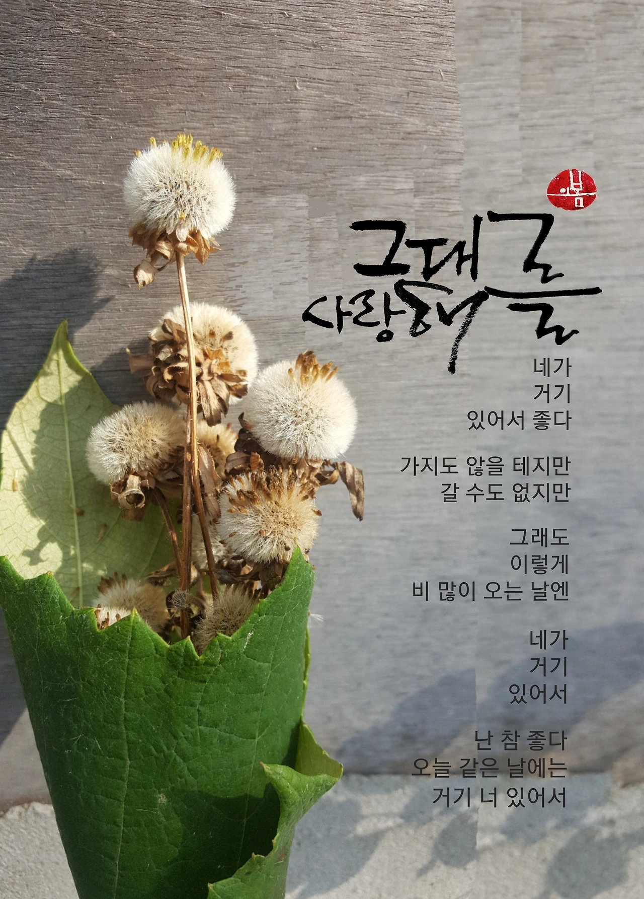 그가 보낸 글 한 줄 마음에 담듯 사진에 새겨 넣고서 백 년을 가두어 기억하려고 해. 심장 쿵하고 내려앉던 날에 장대비가 내렸고, 마음은 흥건히 순이 너로 젖었어. 미치게 보고 싶은 날에는 비가 내렸어.