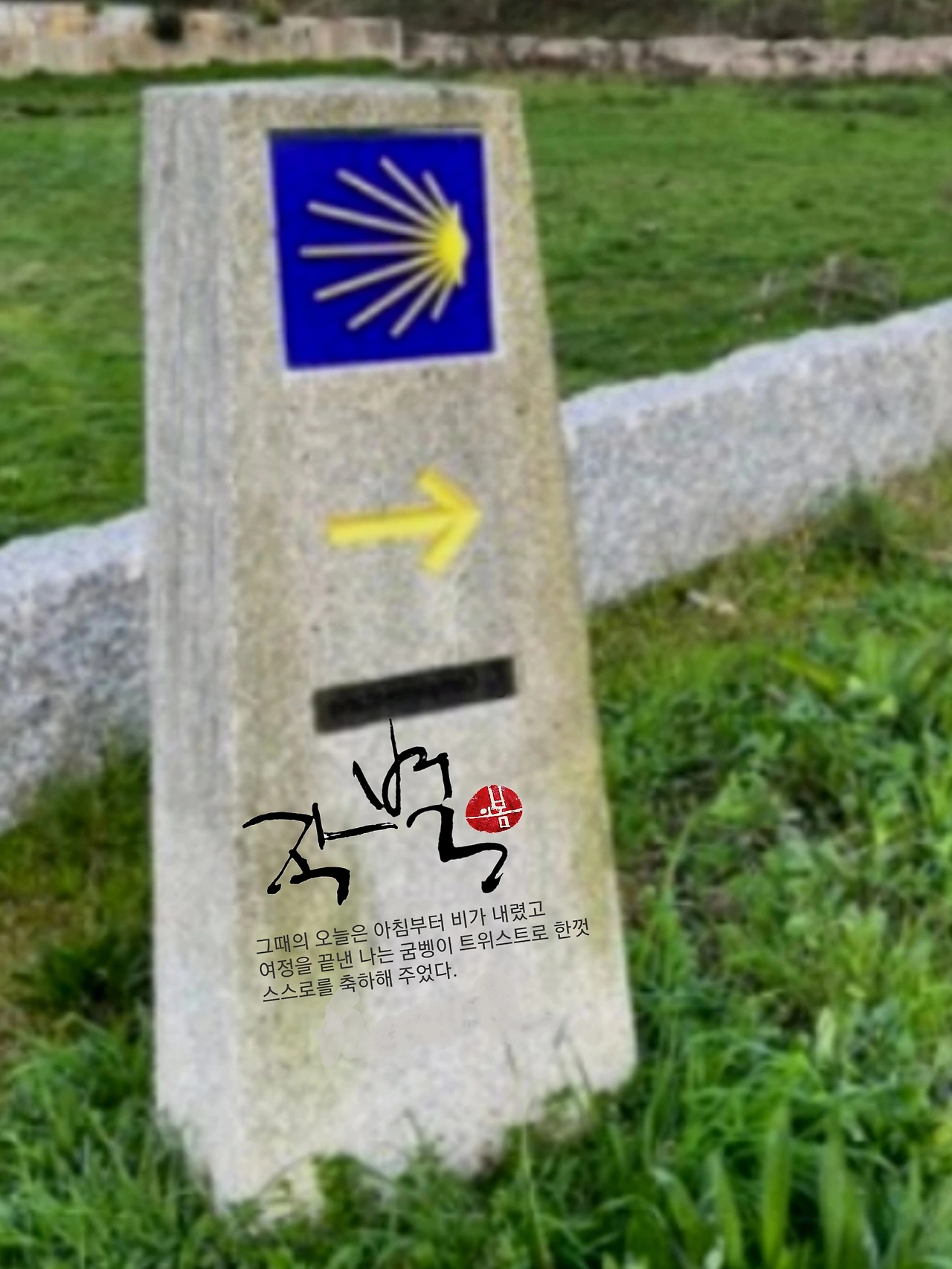 더는 노란 화살표를 따라가지 않아도 좋은 아침을 맞았고, 그만큼 여유롭게 침대에서 뒹굴거리는 호사를 누린다. 보슬비는 소리도 없이 창문을 두드리고 있었고, 일정을 끝낸 순례자는 페북창을 들여다보며 마음을 적셔도 좋았다. 한껏 게으름을 피워 그동안의 여정에 보상을 주었다. 주섬주섬 판초우의에 몸을 구겨 넣지 않아도 된다는 것과 질척이는 운동화를 신지 않아도 된다는 건 희열이었다. 마르지 않은 옷가지와 마를 틈도 없이 내리는 빗줄기는 고문이었으니까. 우의를 팽개치고서 따끈한 라디에이터에 몸을 바짝 붙이고는 마냥 졸고 싶었다.