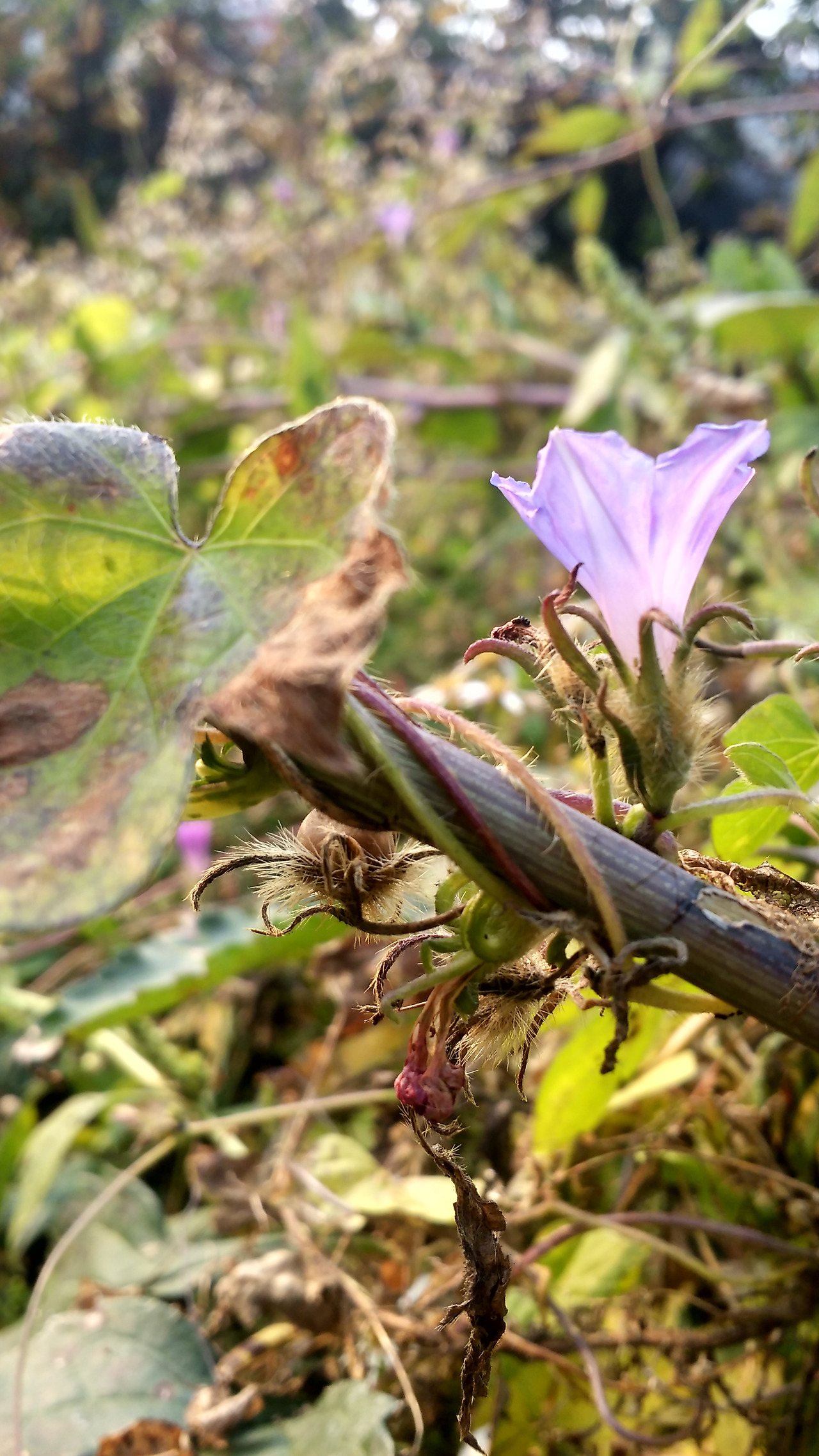 나팔꽃 고개를 들어 아침이 밝았는데