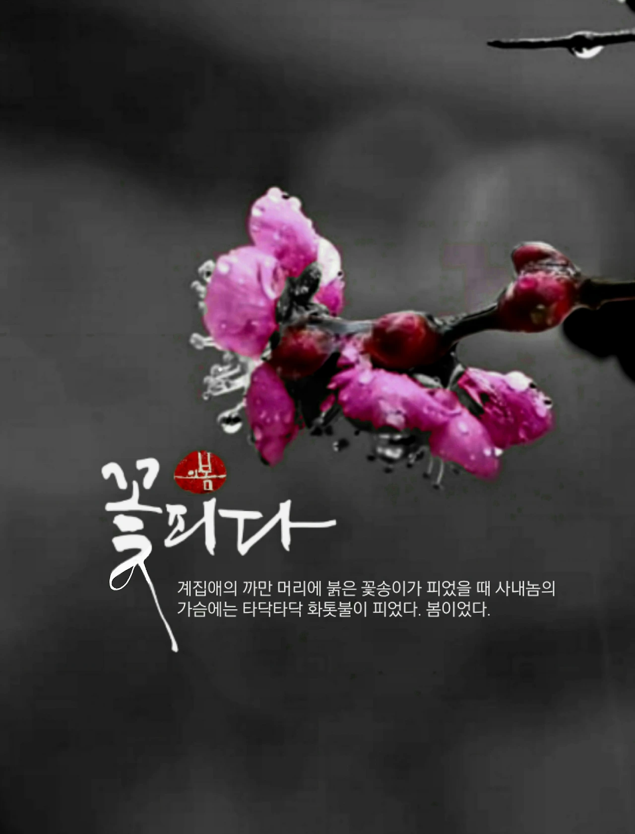 봄이었지만 아침저녁으로 부는 바람은 겨울의 끝에 매달려 있었다. 이불을 가슴까지 끌어올려 덮은 사내놈은 반쯤 몸을 일으켜 벽에 기대고는 계집애를 떠올렸다. 새벽이었지만 아직 방은 어두웠다. 계집애는 산골에 어울리지 않게 뽀얀 얼굴을 하고 있었다. 언제부터였을까? 봉긋이 솟은 가슴은 금방이라도 꽃망울을 터트릴 것 같은 꽃봉오리를 닮아 있었다. 뽀얀 얼굴에는 밤하늘의 별이 내려앉아 반짝였고, 복사꽃 발그레한 꽃잎 두 장이 곱게 피었다. 말을 할 때마다 꽃잎이 달싹였다. 오늘처럼 따따부따 요란을 떨지 않을 때는 향긋한 꽃내음이 나풀거렸다.