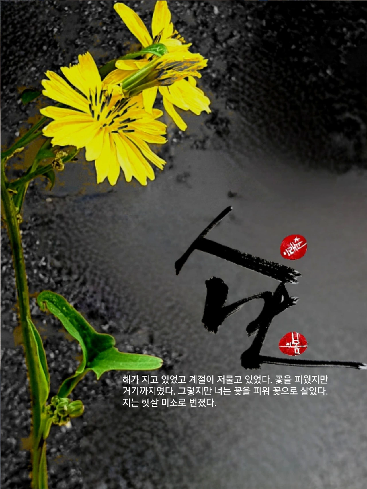 씀바귀가 꽃을 피웠다. 햇살을 닮은 노랑으로 치장하고서 부는 바람에 살랑살랑 흔들렸다. 나를 좀 보아주세요? 아양을 떠는 것만 같았다. 그렇지만 계절이 저무는 바닷가는 쓸쓸했다. 제일 먼저 사람이 떠났다. 다음으로는 날갯죽지에 힘을 붙인 철새가 떠났고, 이별을 기념하겠다고 청승을 떨던 연인이 떠났다. 그렇게 바다는 비었다.