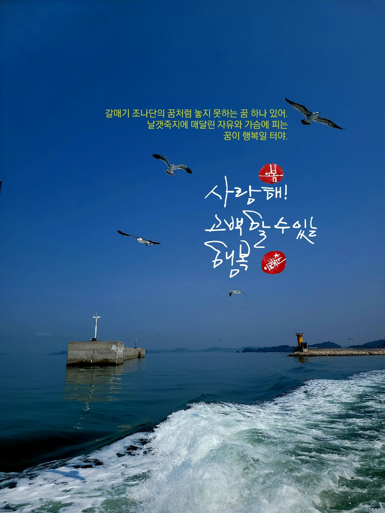 입맛이 썼다. 멀리 여객선의 꽁무니에선 새우깡에 정신이 팔린 무리가 곡예비행을 뽐내고 있었다.