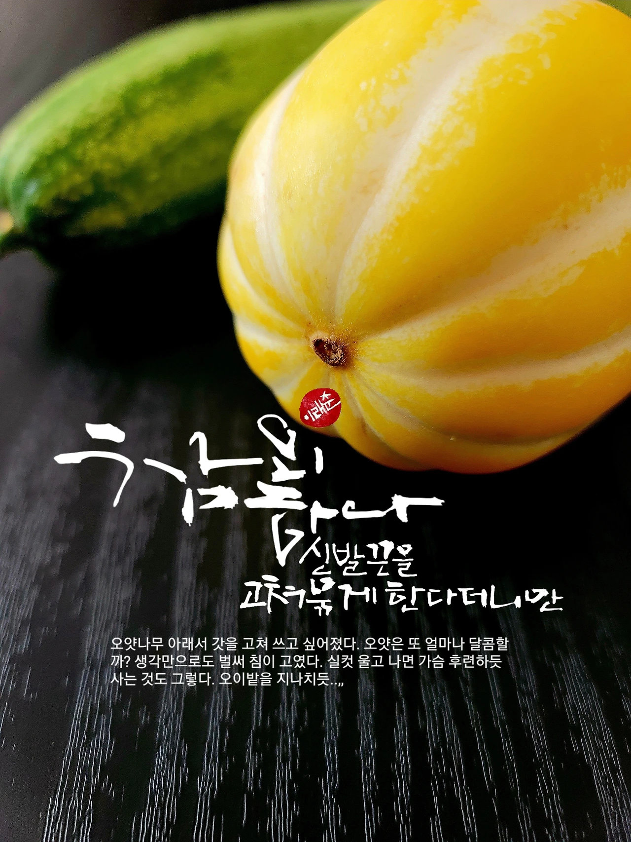 머리를 긁적이며 조심스럽게 말을 꺼낸 사내가 내민 봉투에는 노란 참외가 몇 개, 오이가 또 그만큼 들어 있었다. 혼자 사는 처지라서 참외며 오이가 너무 많다고 했다. 괜찮다면 참외와 오이를 나누자고 했다. 남자의 반응을 살피며 조심스러워했다.