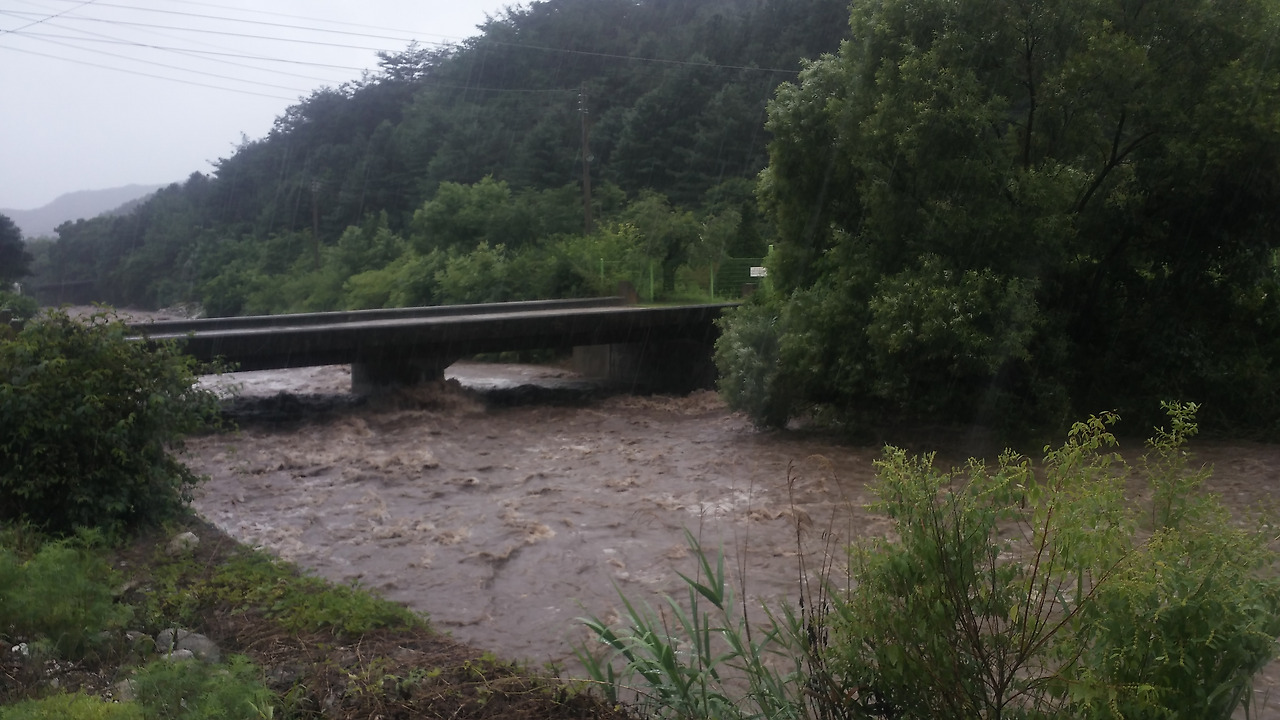 잿빛 흙탕물이 사납게 울부짖으며 몰려가고 있는데, 호랑이의 등에 탄 고양이쯤 되려나, 덩달아 음료수병에 온갖 플라스틱 전사들이 우쭐해서 달리는 거야. 거 참, 어디에 숨었다가 저리도 당당하게 마을을 호령하고, 주민을 조롱하며 흘러가는지 모를 일이야. 풍차로 달려들던 라만차의 돈키호떼라도 되는냥 달려가는 뒷모습에 산천초목이 몸을 떨고, 하늘과 땅이 침묵하니 세상은 쿠르릉꾸르릉 돌 굴리며 질주하는 개울물이 갑 중의 갑이야. 그래, 오늘은 네가 최고다. 그렇게 알터이니 계곡마다 숲속마다, 감추고 숨은 너의 똘마니들, 부르고 겁박해서 줄줄이 사탕으로 엮어 잡고 멀리로, 멀리로 가려무나. 사라졌다는 개천의 용이 너로해서 부활했다 동네방네 소문이라도 낼 터이니 부디 그리만 하여 다오. 빌어도 보았는데 결국은 우주로 갈 것 아니어서 비는 마음이 애잔하네. 에효....