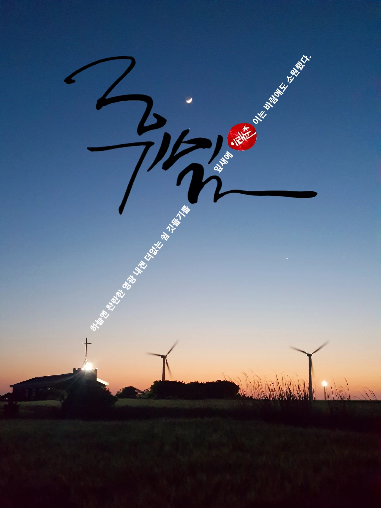 어스름 어둠이 깃들기 시작하면 하릴없는 개가 동네를 어슬렁대고, 기껏 뛰놀던 아이들은 하나 둘 집을 찾는 시간이면 좋겠습니다. 누구 하나 서두르거나 조바심에 안달을 떨지 않아도 적당히 황혼이 물들고, 나는 그 언덕배기에 올라 붉게 물든 황혼에 흠뻑 젖었으면 좋겠습니다. 고요하고 포근한 바람이 불어올 터입니다. 그대 품에 안긴 듯 따뜻하겠지요.