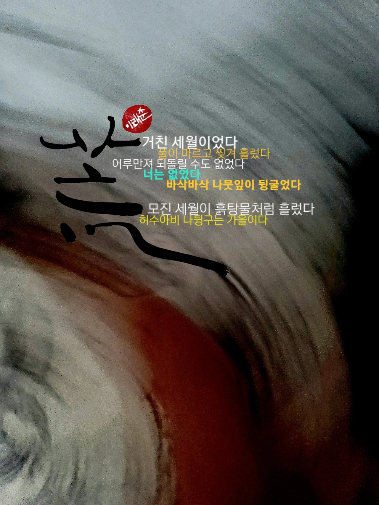버석버석 소리 내며 부서질 계절에 서서 안타까운 마음이 들었다. 여름날의 영광은 단풍으로 물들었다가 이내 퇴색될 터였다. 사람이나 초목이나 한 번 태어나 성장하는 것들의 숙명이었다. 그래서 가을은 유독 쓸쓸했고 허무하기도 했다. 인생의 뒤안길이기도 했고 계절의 마지막 모퉁이여서 그럴 터였다. 걷다가 마을 버스정류장에 앉아 한숨을 몰아쉬었다. 한 번에 다다를 수 없어 쉬었다. 앉은 김에 하늘 한 모금 더 마셨다. 입안 가득 씁쓸함이 남았다. 애처로운 가을이다.