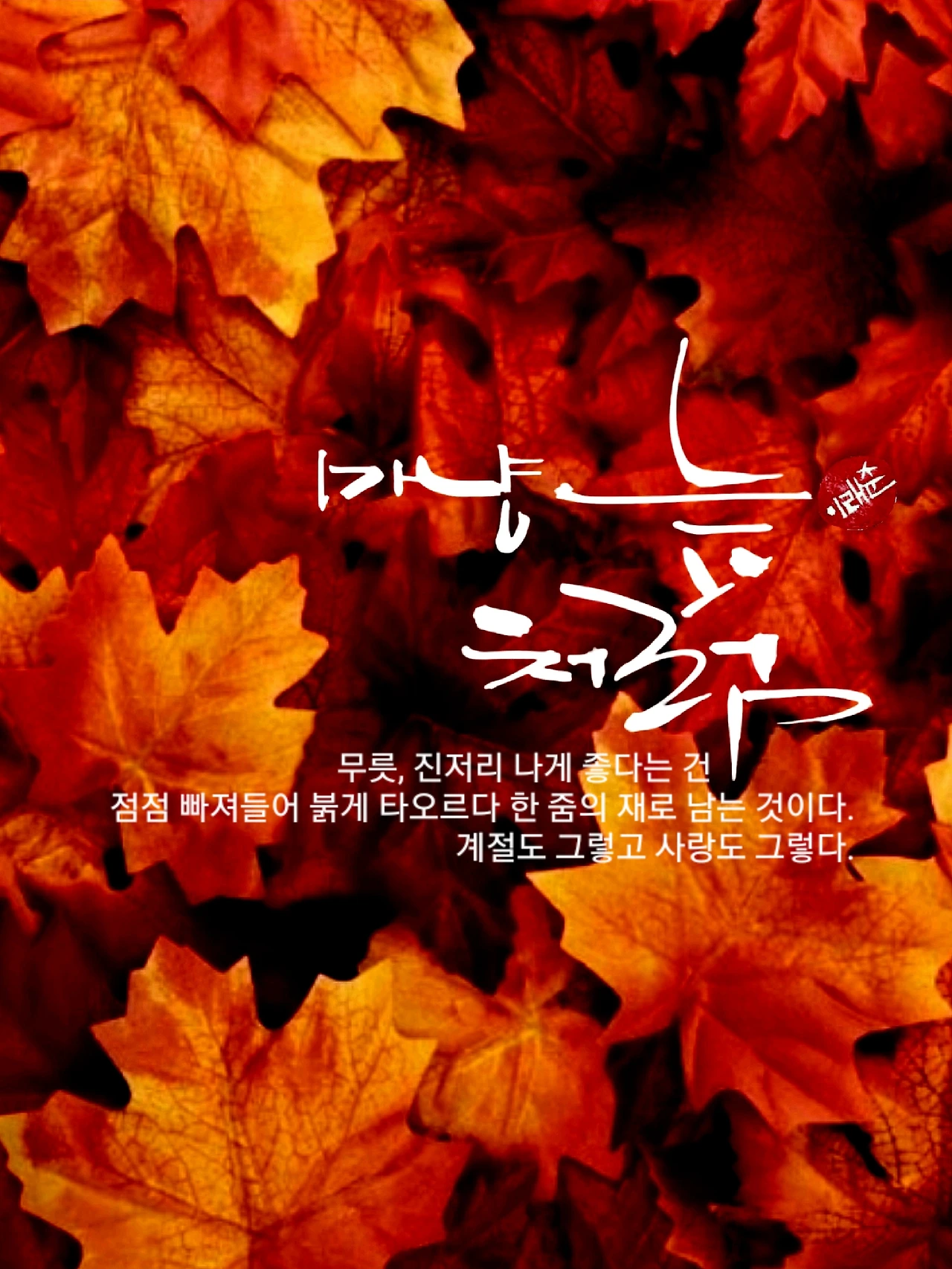 타는 듯 붉게 물든 단풍에 계절이 깊다. 낙엽을 거부하며 가지에 매달려 발버둥 칠 수도 없다. 짙어지고 깊어지는 건 그래서 상어의 유영과 다르지 않다. 숙명이고 이미 새겨진 운명이다. 거부할 수 없다면 오히려 더욱 짙어 몸서리치는 것도 나쁘지 않다. 목덜미를 타고 번져가는 소름처럼 찌릿한 떨림이면 더욱 좋을 테고....