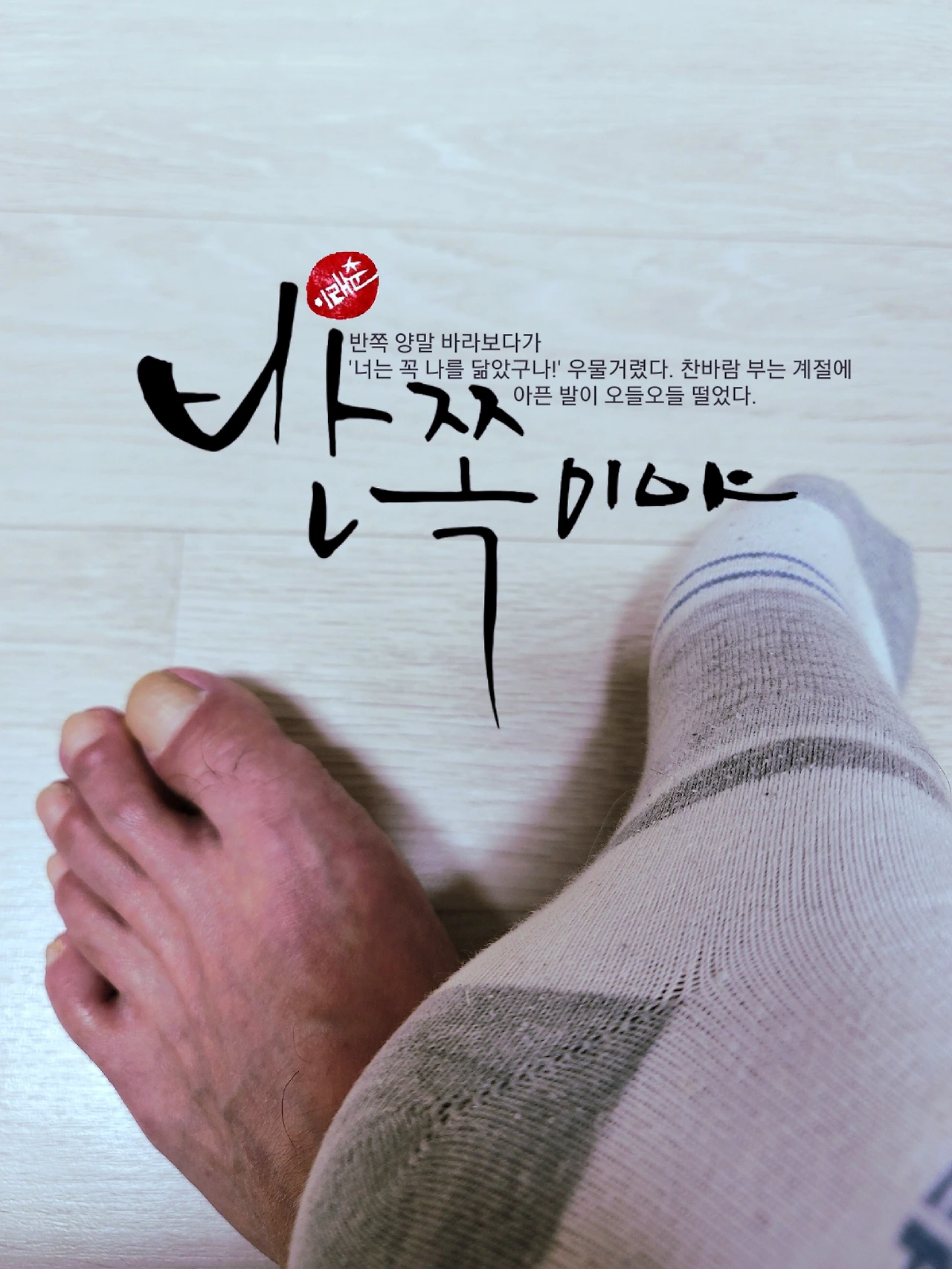 뭐가 자랑이라고 사진 한 장 찍고는 반쪽 양말 바라보다가 '너는 꼭 나를 닮았구나!' 우물거렸다. 찬바람 부는 계절에 아픈 발이 오들오들 떨었다. 반쪽의 서글픔이다.