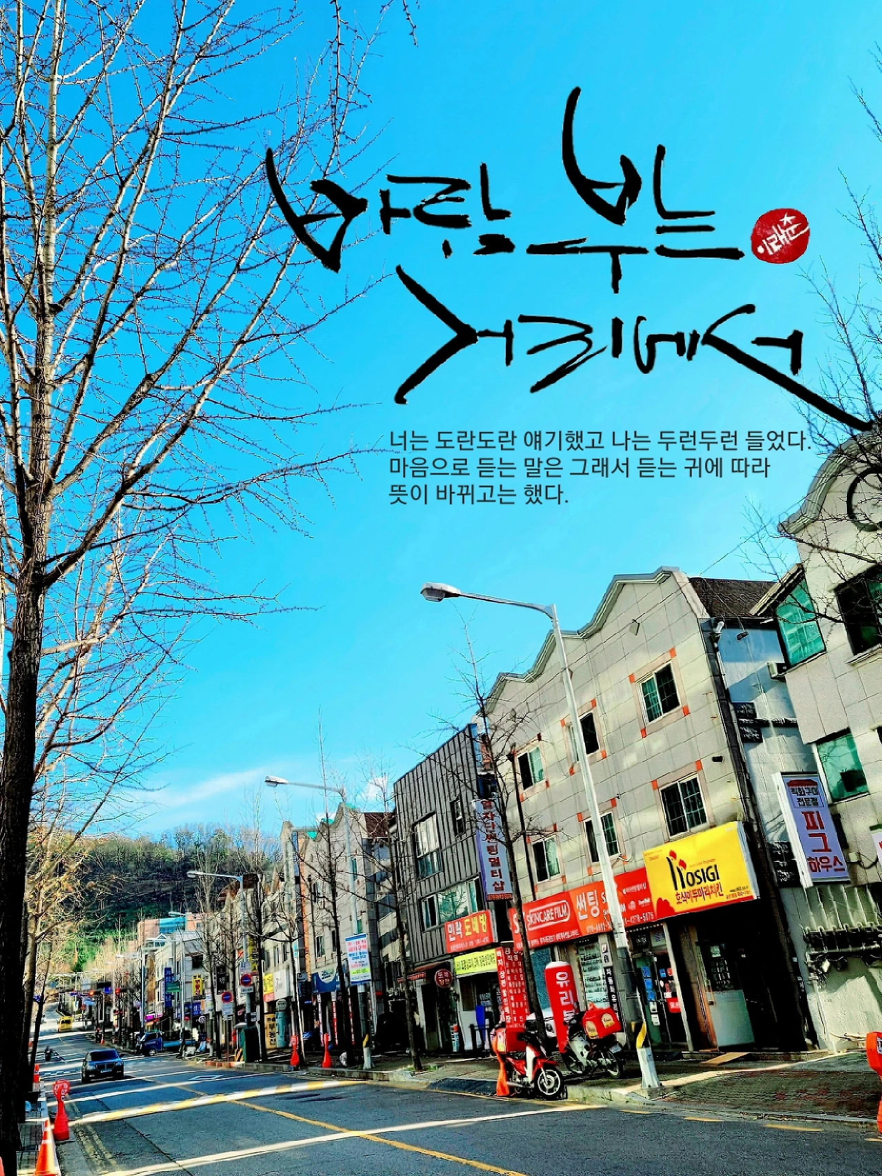 동네 이면도로는 대체로 한갓지고 여유로웠다. 출퇴근시간을 제외하면 노란 학원차량이 한낮의 졸음을 내쫓는 게 고작이었다. 어쩌다 까치 두어 마리 내려앉아 거닐었고 겁 많은 길고양이가 후닥닥 건너뛰었다. 날씨가 추워지기 전에는 채소장수차량이 기웃거리기도 했지만 기온이 곤두박질친 이후에는 그마저도 자취를 감췄다. 바람만 불었다. 발톱을 세운 바람도 아니었다. 어슬렁거렸다. 뒤춤진 바람이 하품을 쩍쩍해대며 동네를 어슬렁댔다. 지켜보고 있으면 곰방대 뻐끔거리며 소작농의 안마당을 기웃거리는 마름 놈 같았다. 몸짓 하나하나마다 알량한 마름 놈의 거들먹거림이 잔뜩 들러붙어 있었다.
