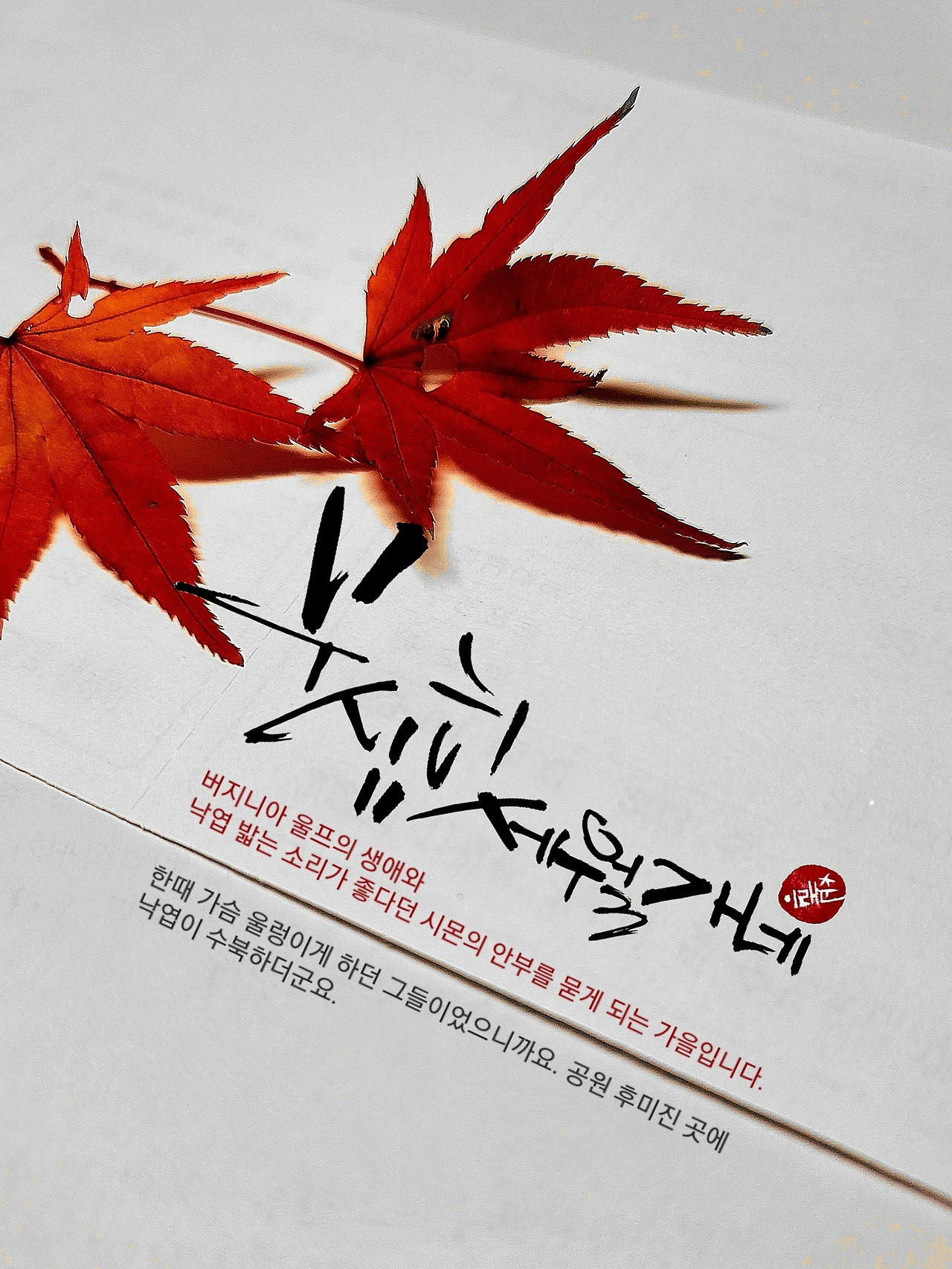 가을이면 낙엽보다도 먼저 그의 안부를 묻게 됩니다. 게다가 그는 오늘도 낙엽 밟는 소리가 좋은지? 묻게도 되고 대답을 기다리기도 합니다. 하지만 여전히 나는 그의 대답을 듣지 못했습니다. 순수했고 유치했던 그런 때도 있었습니다. 볼펜자국 선명하도록 편지를 쓰고 귀하게 구한 소설책에 파묻혀 밤을 지새우던 그때가 그립기도 합니다. 붉은 단풍잎 몇 개 뜯어다가 사진을 찍었습니다. 그냥 아무것도 하지 않고 무심히 보낸다는 게 어째 죄스러웠다 할까요. 그랬습니다. 이야기보따리 풀어놓고 라떼는 말이야.... 꼰대스럽게 시작되는 이야기의 전개가 어울릴 세월 앞에 섰습니다. 무심하지요? 세월이란 놈도, 순이라는 계집애도 다 무심하기 짝이 없습니다. 아, 이런....
