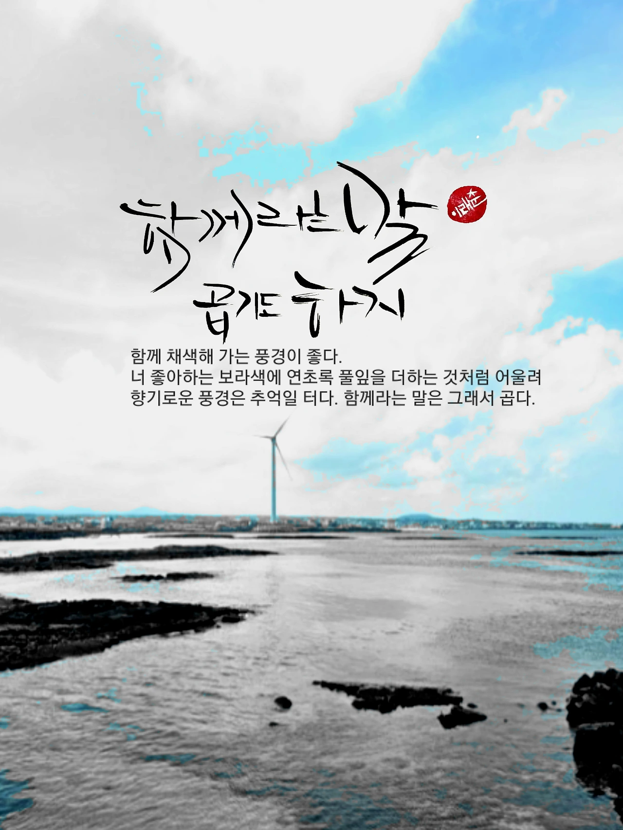 함께 채색해 가는 풍경이 좋았다. 너 좋아하는 보라색 꽃잎에다 연초록 풀잎을 더하는 것처럼, 함께해야 향기로운 풍경은 그것만으로도 추억이 될 터다. 함께라는 말은 그래서 곱다. 하나에 하나를 더해 둘이 되는 게 아니라 셋 되고 넷 되는 건 함께가 만드는 세상이다. 흑백사진에 마음으로 물들이는 천연색처럼 우리라는 말과 함께라는 말의 색을 더한다면 노을은 더욱 찬란할 터다. 이왕 바라보는 세상이라면 달콤 쌉싸름한 세상을 보고 싶다.