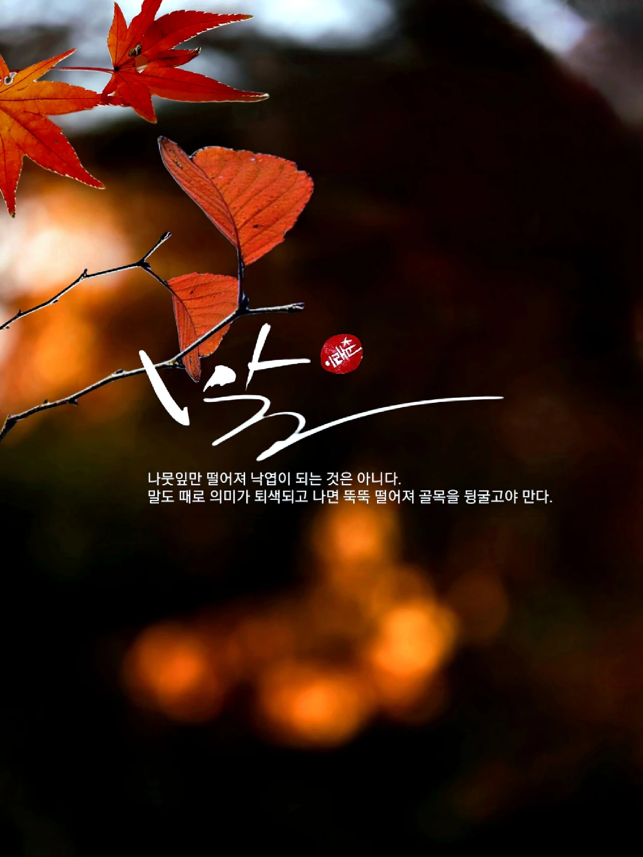 나뭇잎만 바람에 떨어져 낙엽이 되는 것은 아니야. 의미를 축소하고 낯빛을 바꿔야 하는 말들도 낙엽이 되기도 해. 요즘처럼 계절이 바뀌고 가슴에 찬바람이 불 때면 특히나 그런 감정들이 주체할 수 없는 무게로 증폭되는 거야. 입에 자물쇠 하나 채워 묵언수행 동안거에라도 들어가야 하나? 머리를 긁적이는 날에 소란스럽게 창틀이 덜컹거렸어. 바람이 사나운 날이야. '남들도 다 이러면서 살아!' 하는 말 따위로 가슴을 달래지 못하는 날에는 먼 산 우두커니 바라보면 되려나 모르겠어. 낙엽으로 뒹구는 말들이 골목을 기웃거리는 것만 같아.