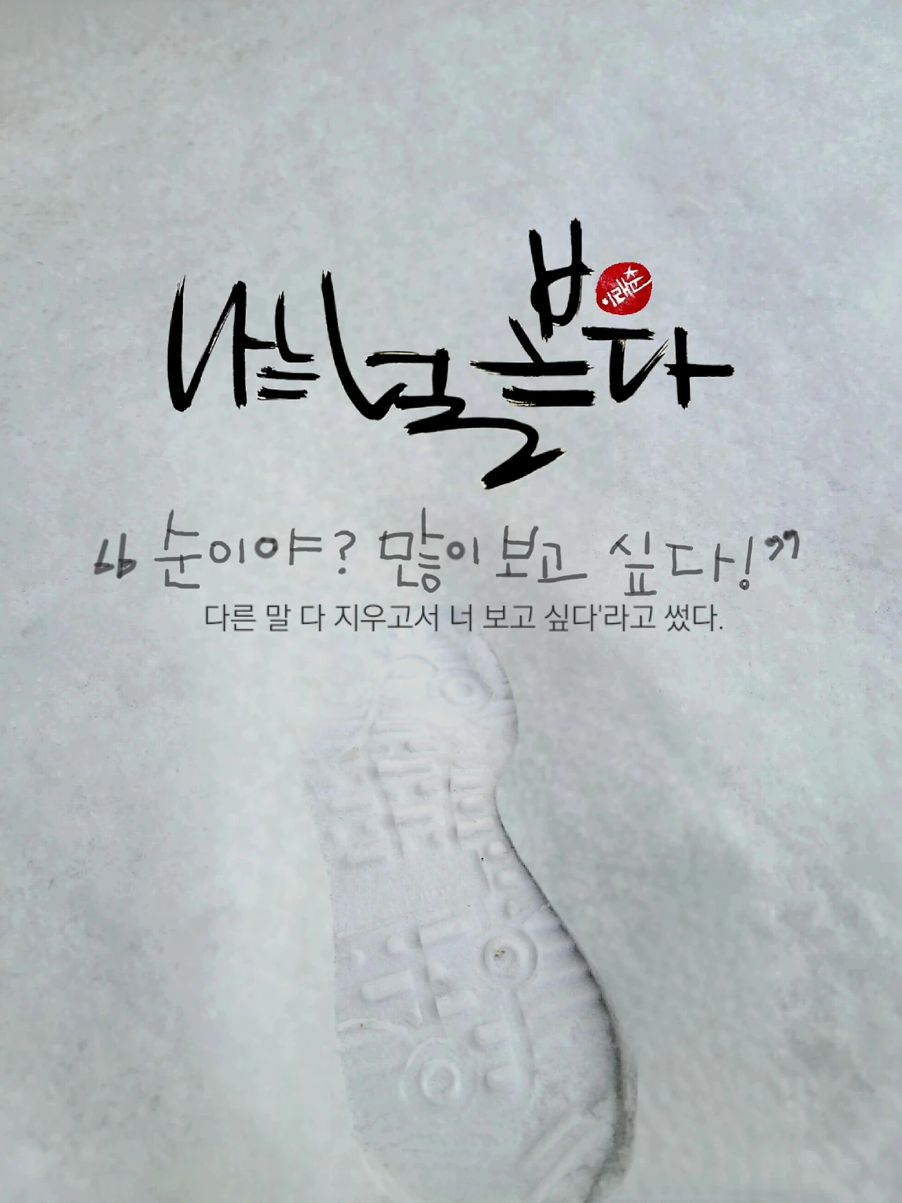 눈밭에 발자국 하나 찍고서 가만가만 나는 너를 바라보았다. 발그레 얼굴 붉힌 네가 꽃처럼 향기롭게 웃었다. 바라봄이 좋아 나도 웃었다.